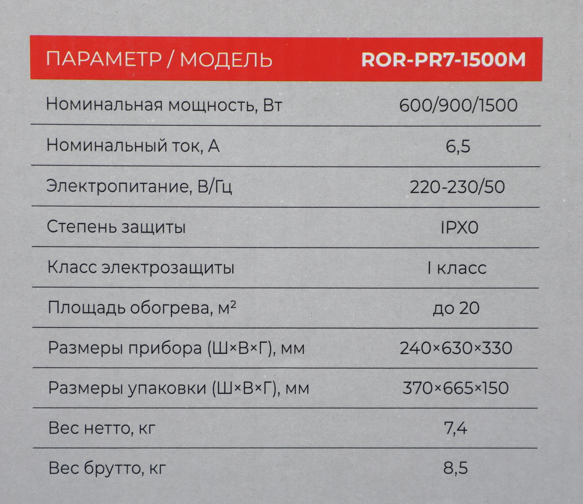 - PartNumber/Артикул ПроизводителяROR-PR7-1500M