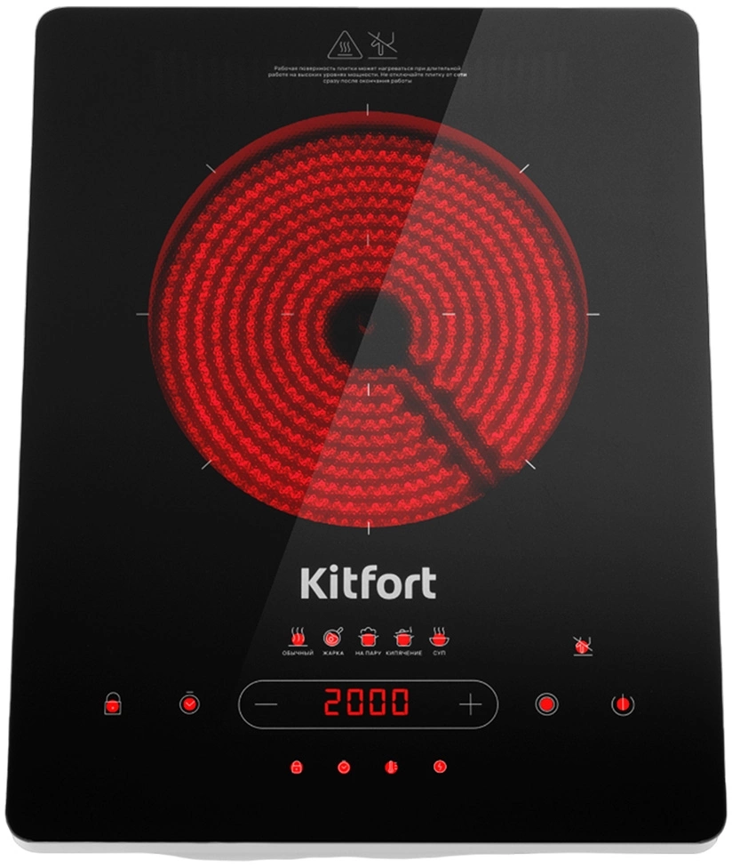 Плита Инфракрасная Kitfort КТ-153 черный/серебристый стеклокерамика (настольная)