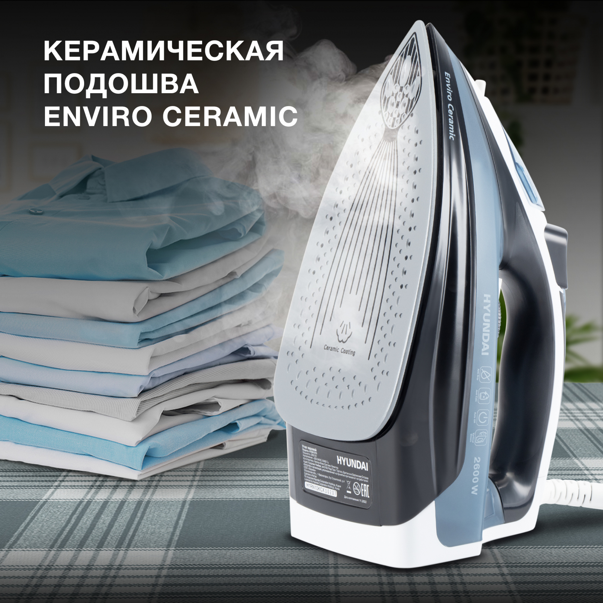 Утюг Hyundai H-SI01573 2600Вт черный/синий