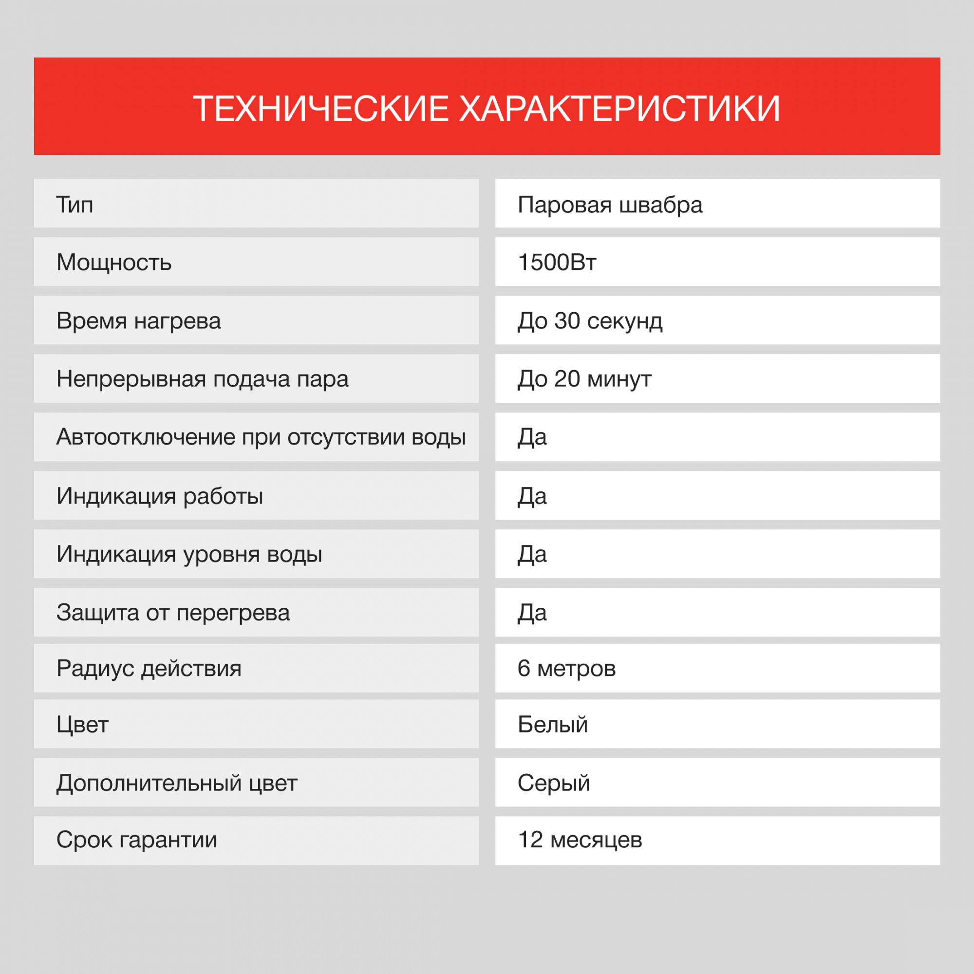 Швабра паровая Starwind SSM5590 1500Вт белый/серый