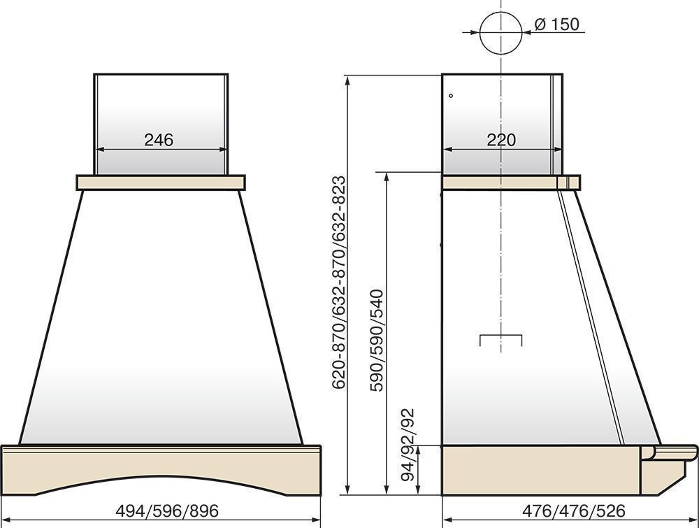 Вытяжка каминная Elikor Ротонда 60П-650-П3Л бежевый/дуб коричневый управление: ползунковое (1 мотор)