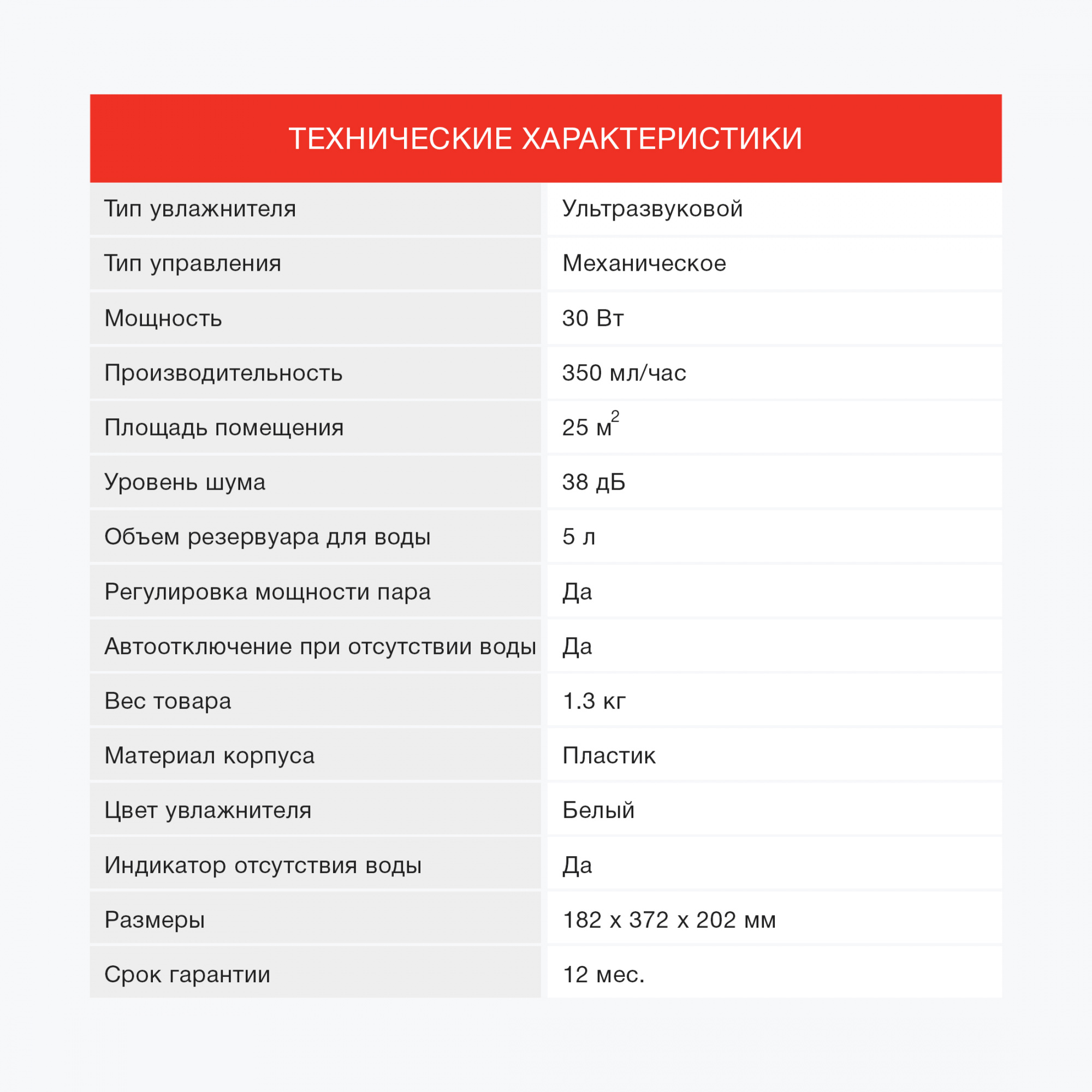 - Тип увлажнителяультразвуковой