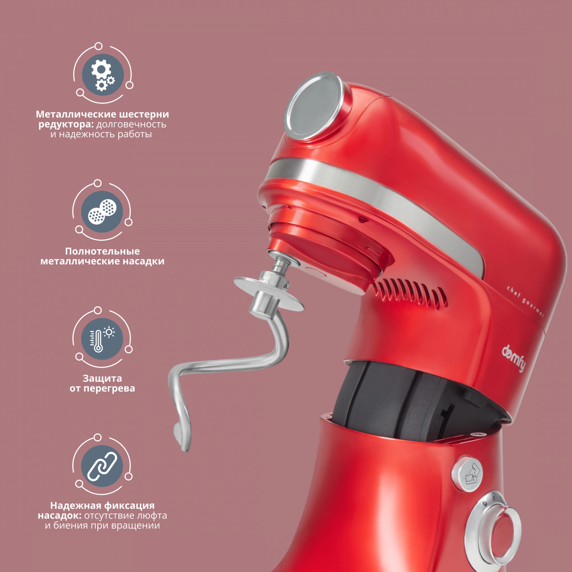 Кухонная машина Domfy DSC-KM502 планетар.вращ. 2000Вт красный