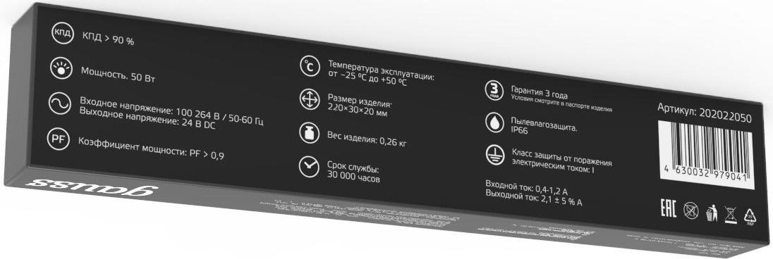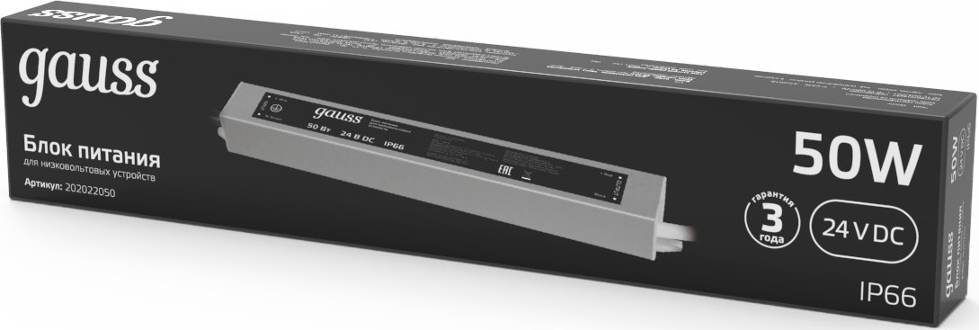 Блок питания Gauss 202022050 пониж. для лен.светод. черный