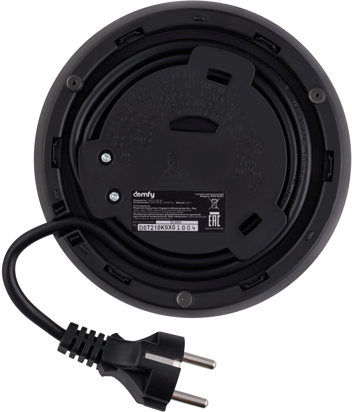 Чайник электрический Domfy DSM-EK401 1.8л. 2200Вт черный/прозрачный корпус: стекло/пластик