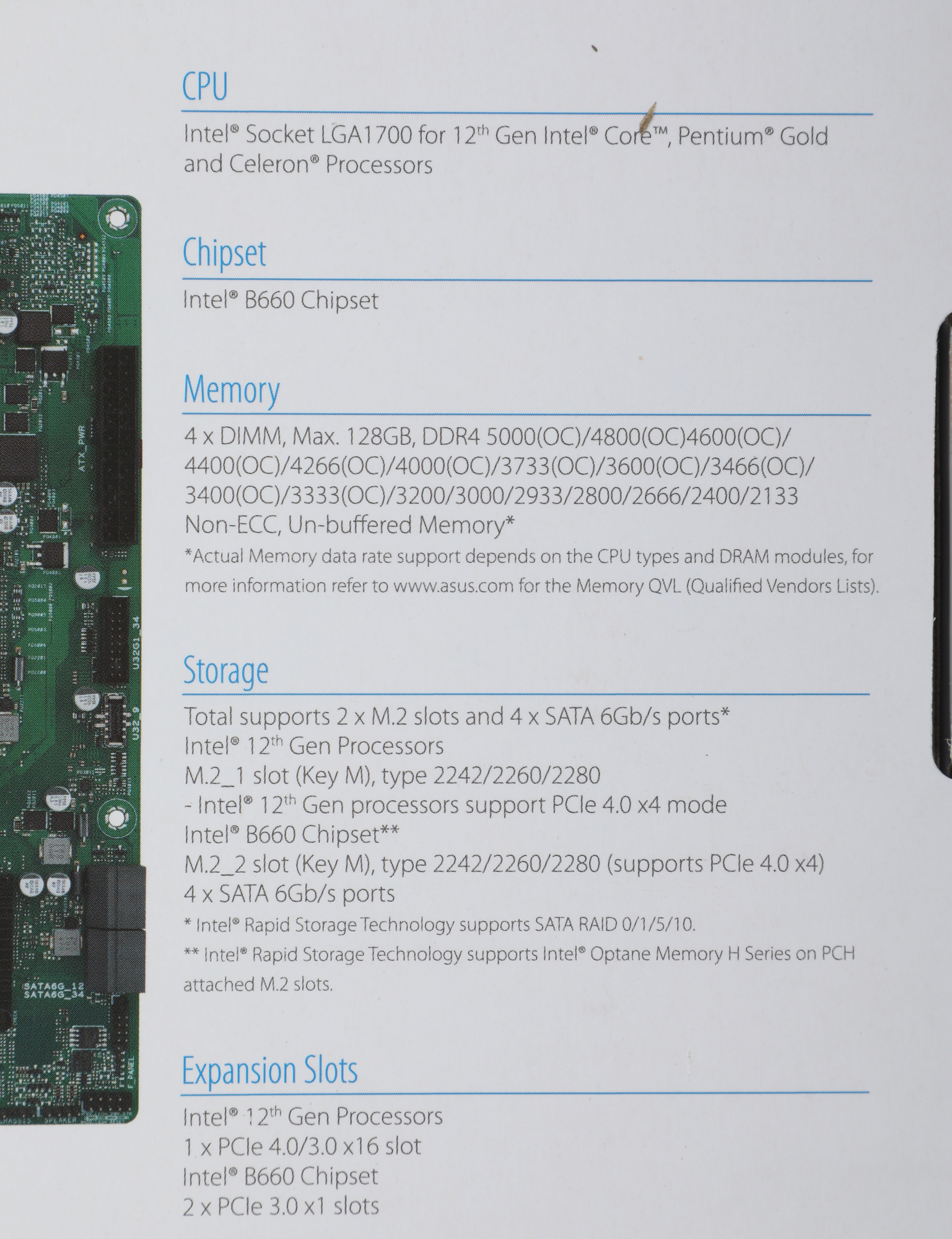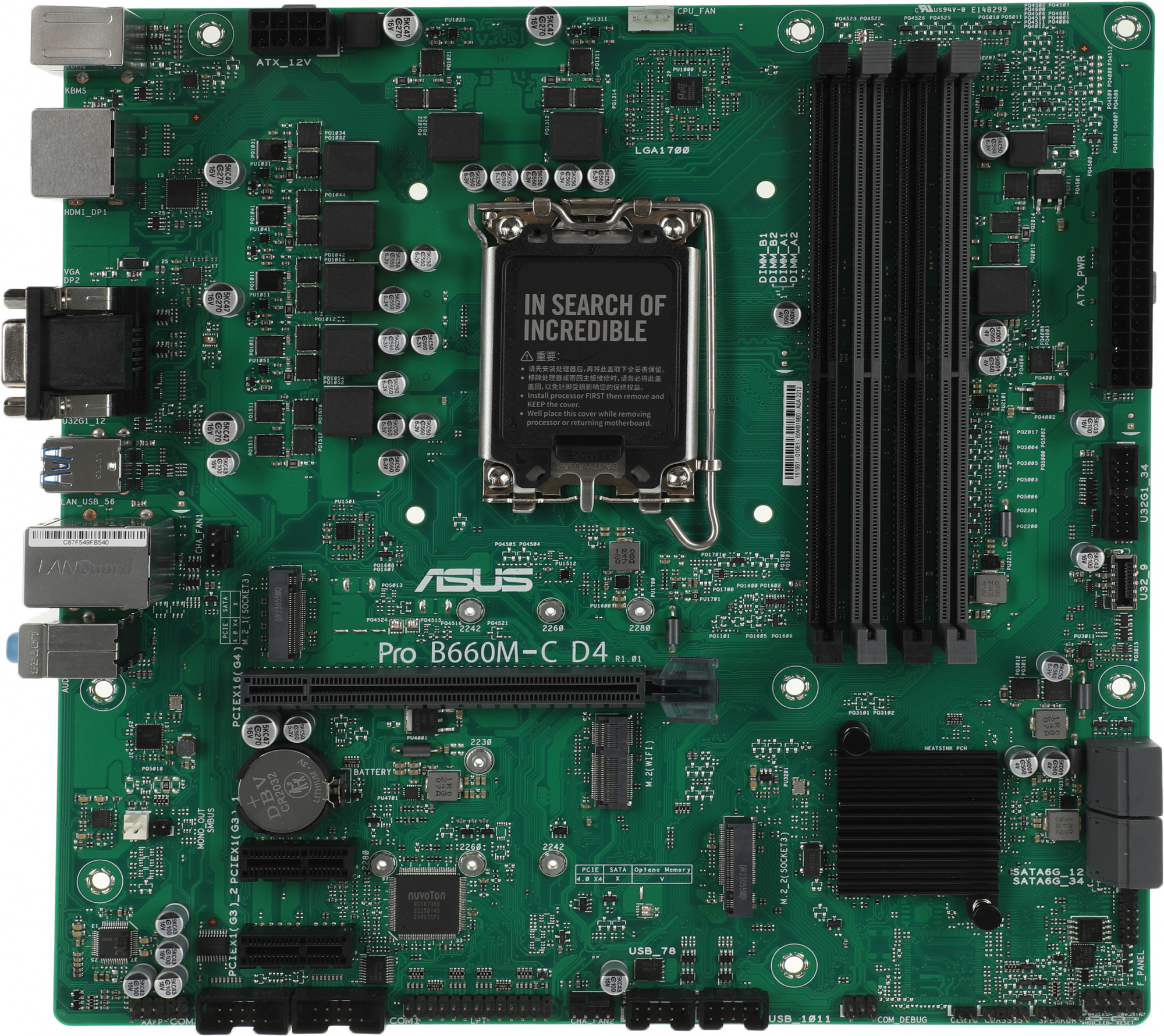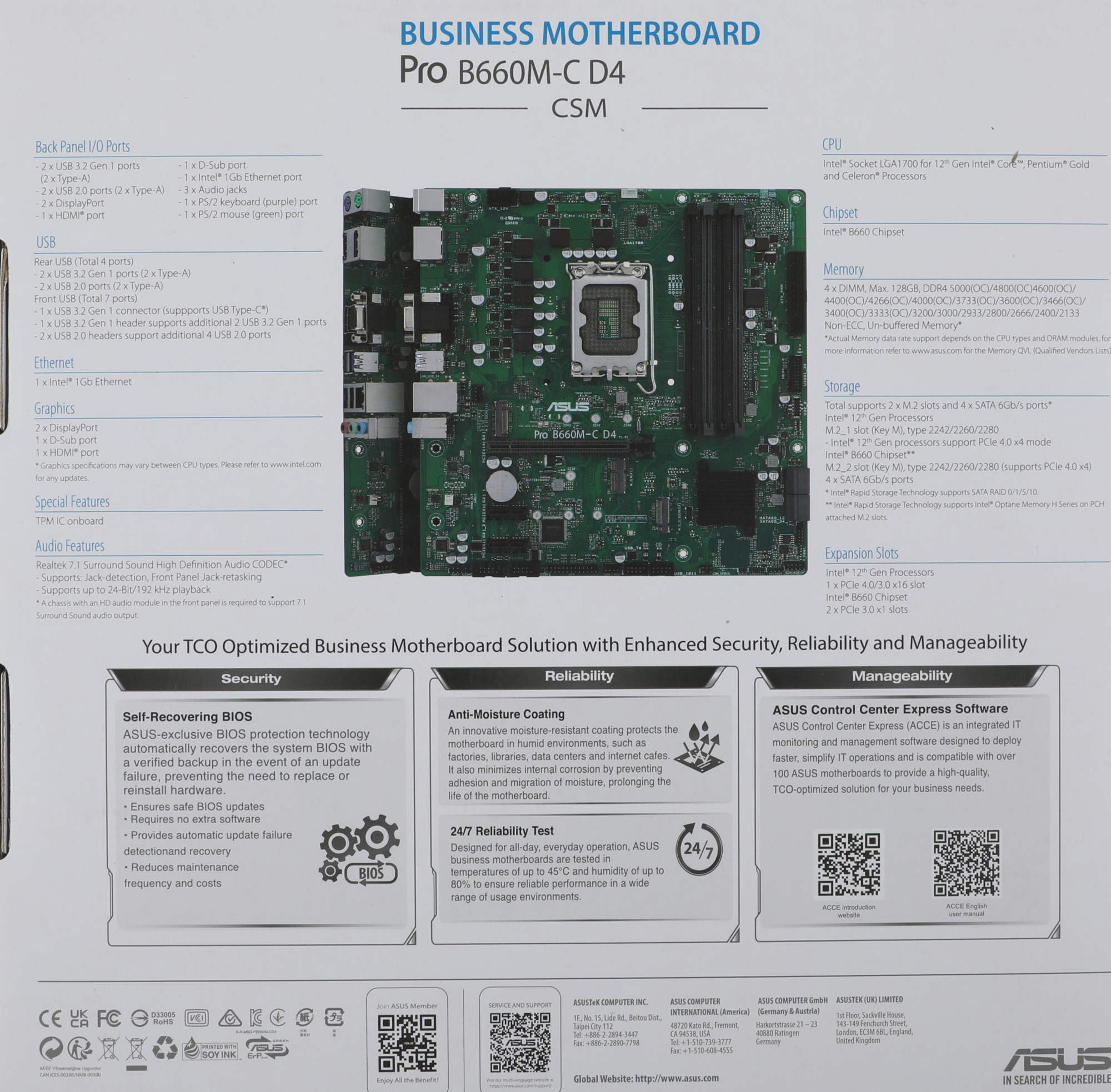 Материнская плата Asus PRO B660M-C D4-CSM Soc-1700 Intel B660 4xDDR4 mATX AC`97 8ch(7.1) GbLAN RAID+VGA+HDMI+DP