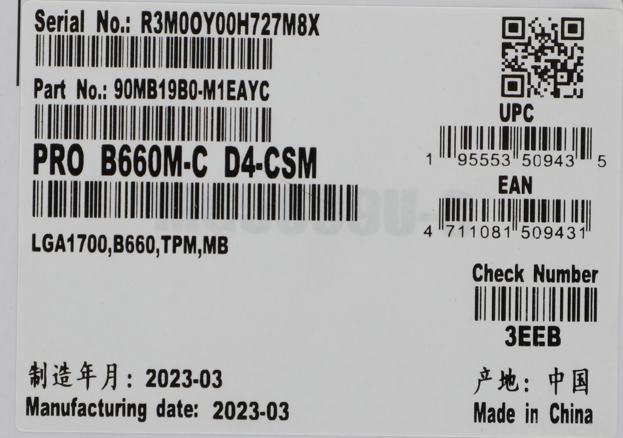 - PartNumber/Артикул ПроизводителяPRO B660M-C D4-CSM