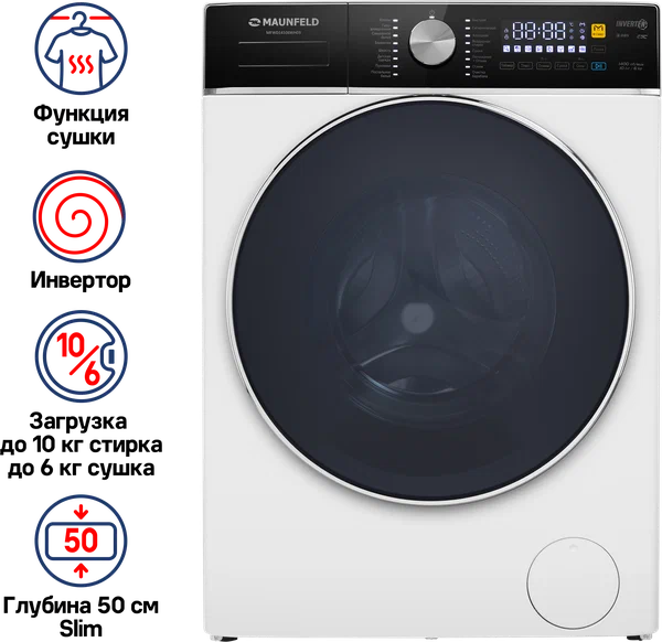 Стиральная машина Maunfeld MFWD14106WH03 класс: B загр.фронтальная макс.:10кг (с сушкой) белый инвертер