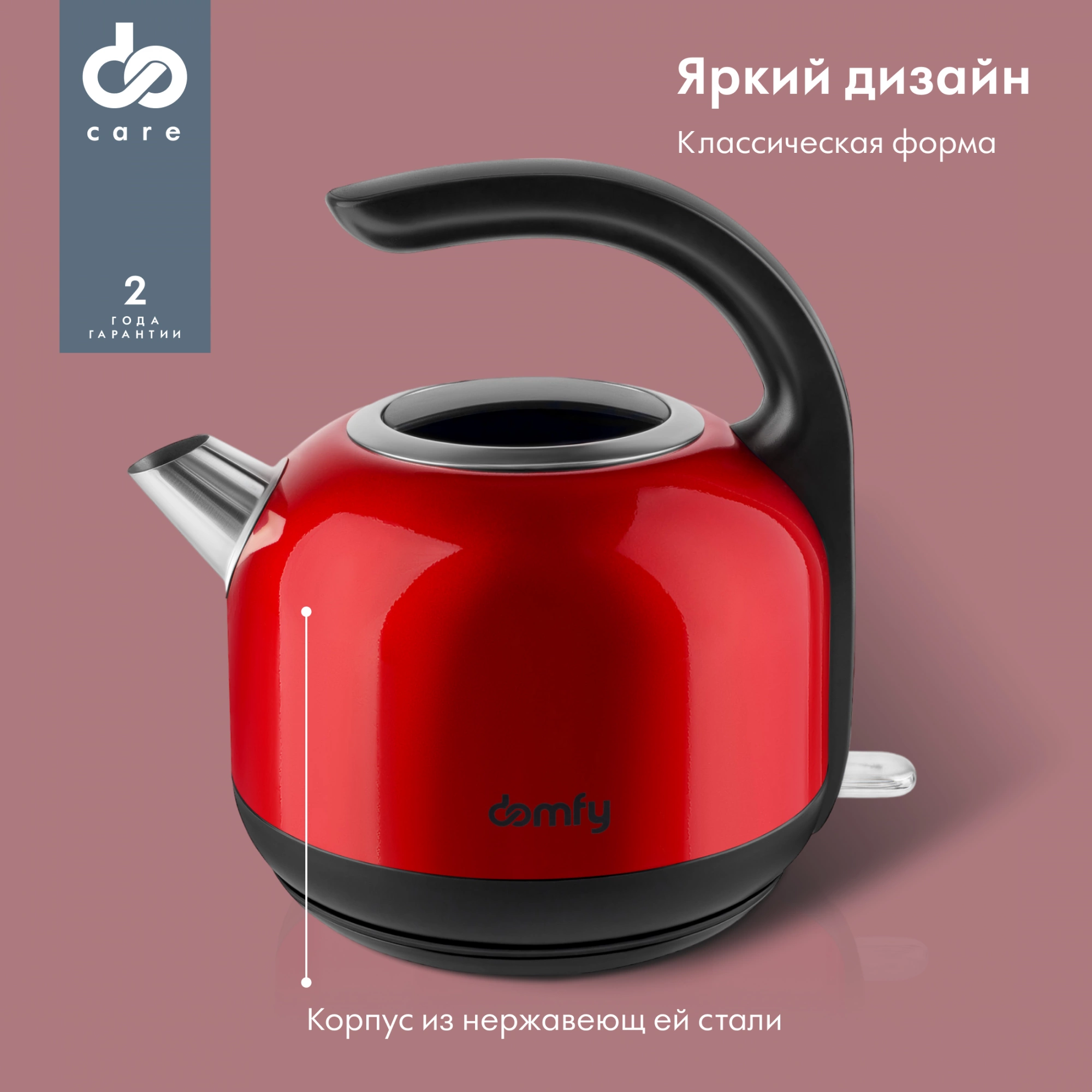 Чайник электрический Domfy DSC-EK506 1.7л. 2200Вт красный/черный корпус: металл/пластик