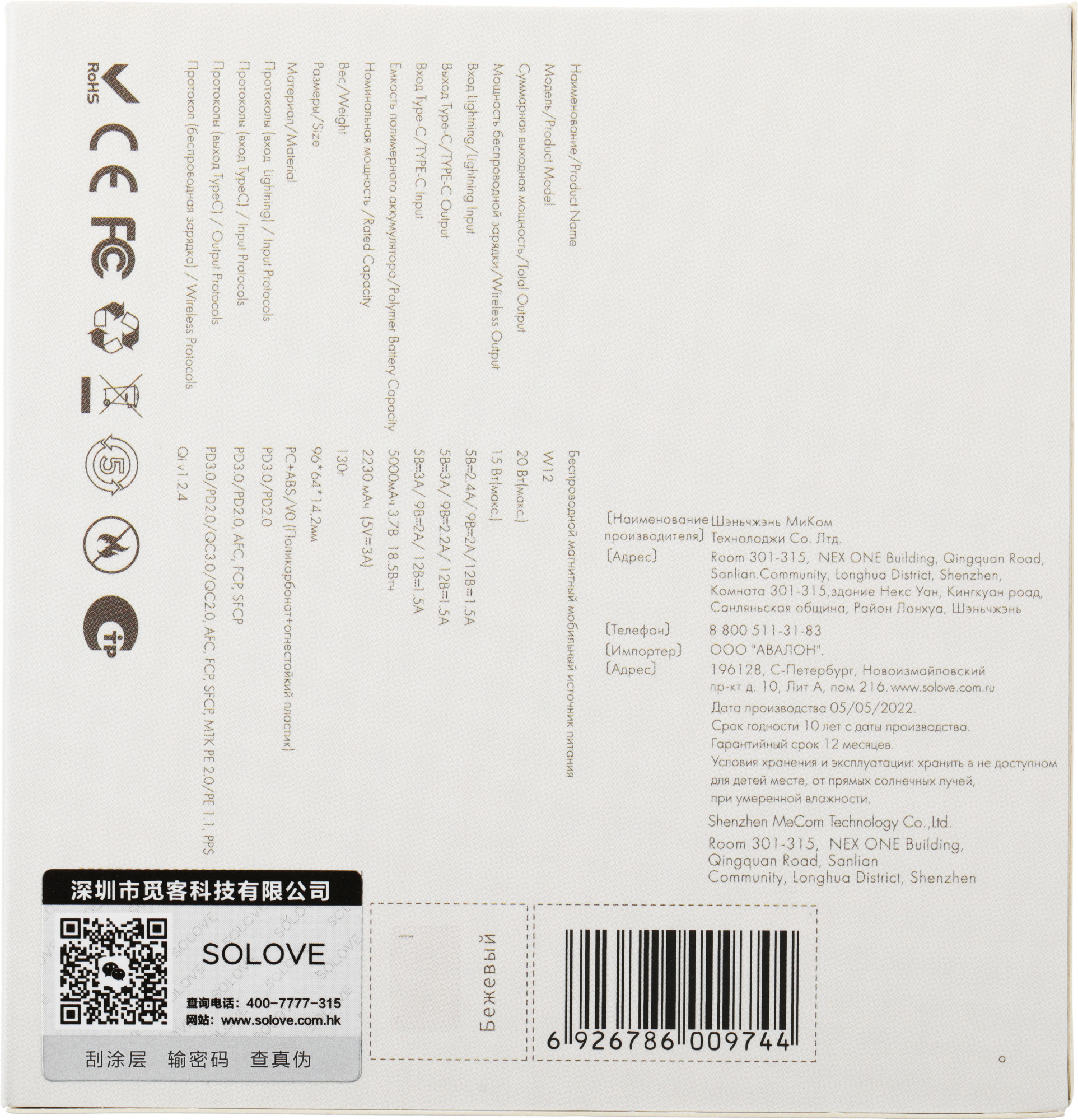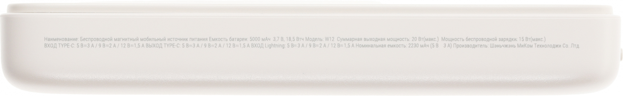 Мобильный аккумулятор Solove W12 5000mAh QC3.0/PD3.0 20W 3A USB-C беспров.зар. бежевый (W12 BEIGE RUS)