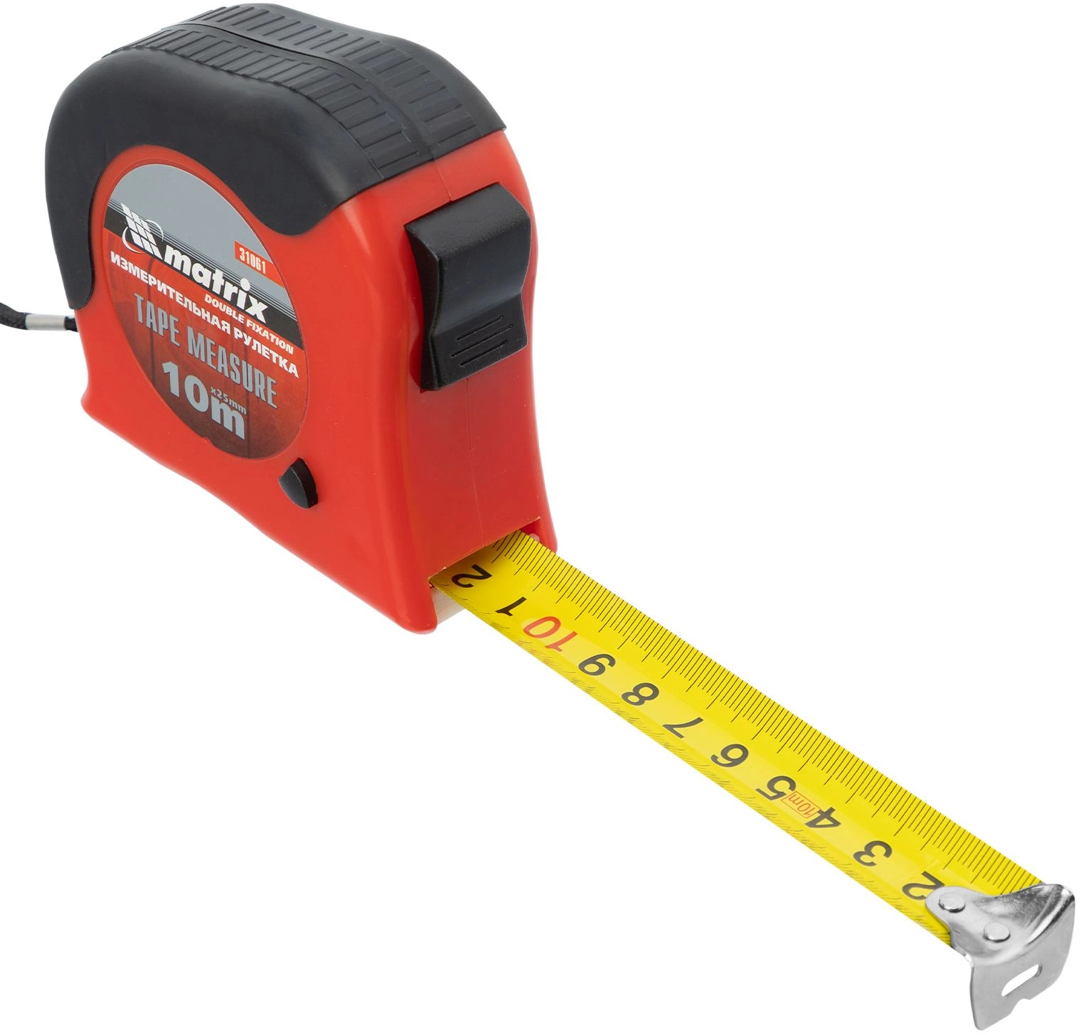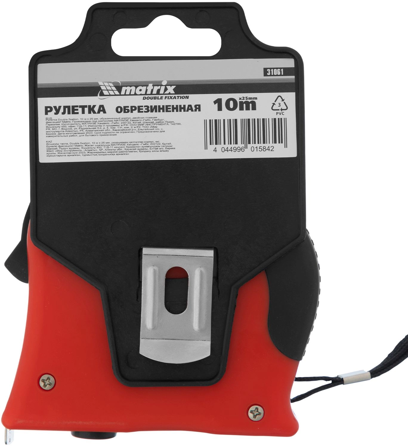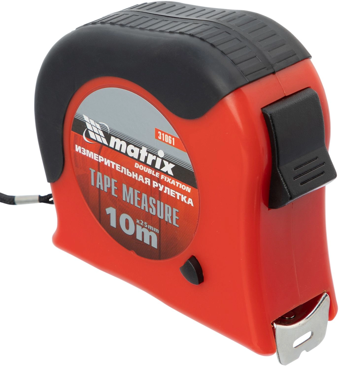 Рулетка Double fixation, 10 м х 25 мм, обрезиненный корпус, двойная плавная фиксация// Matrix