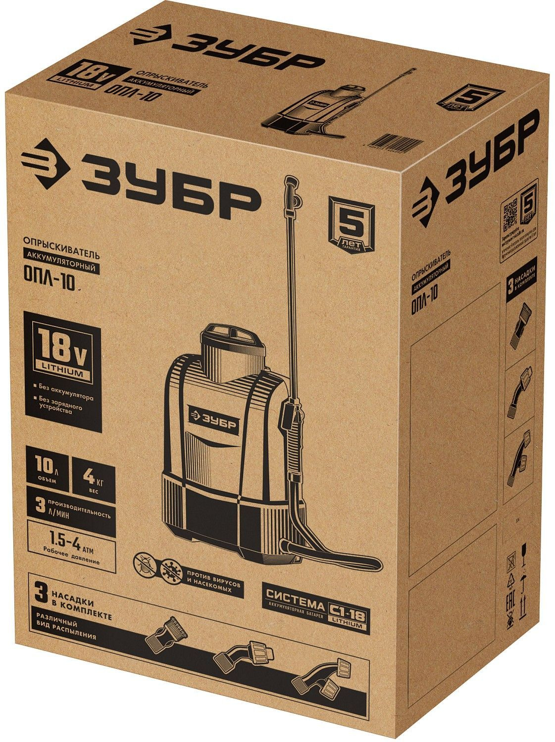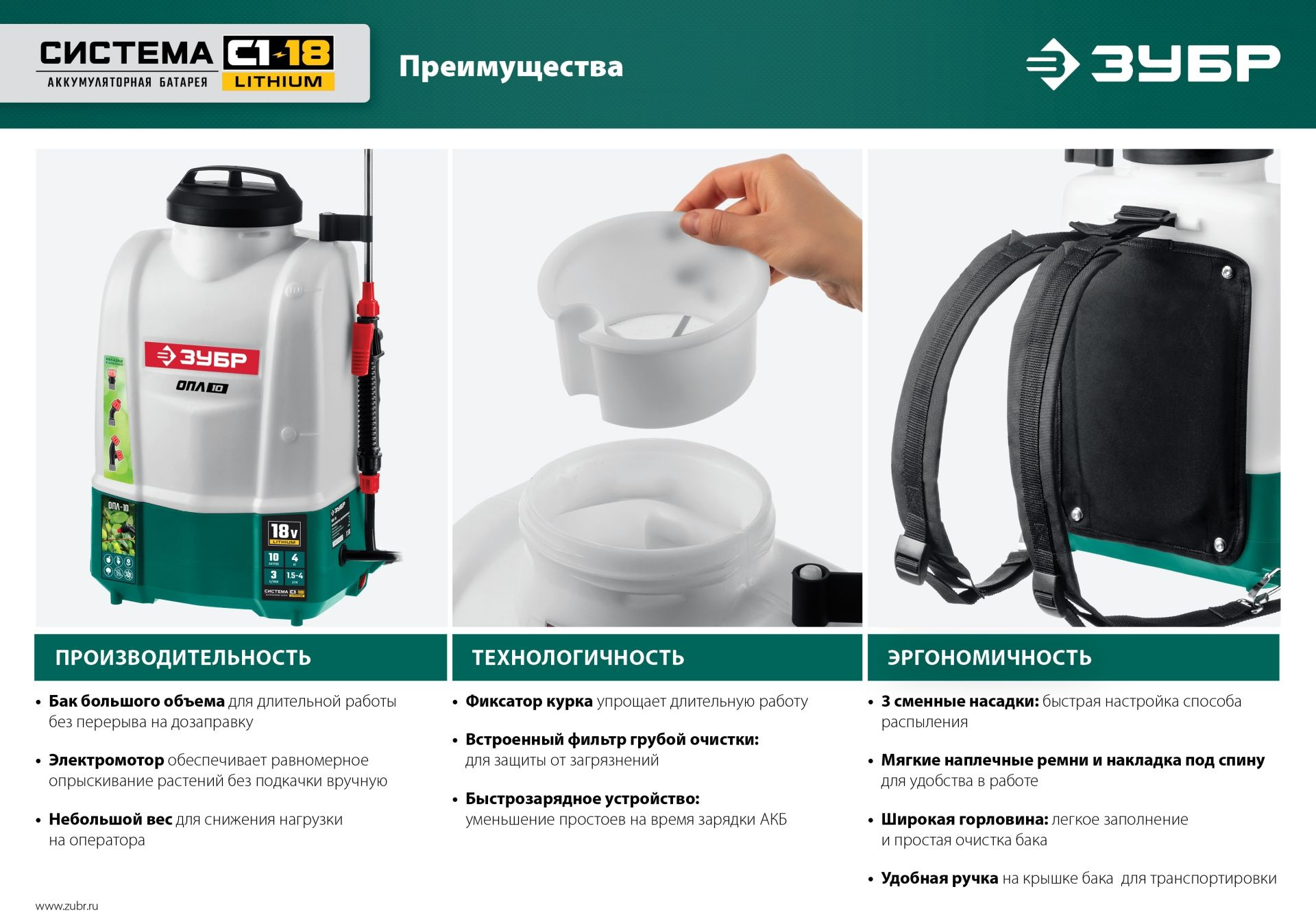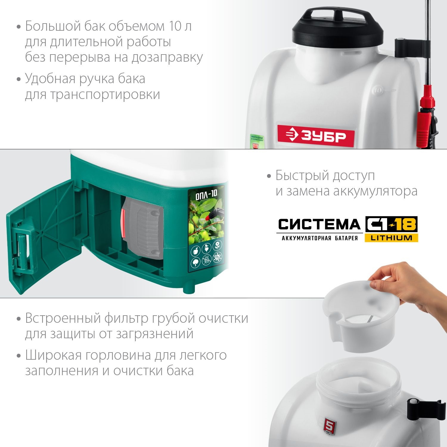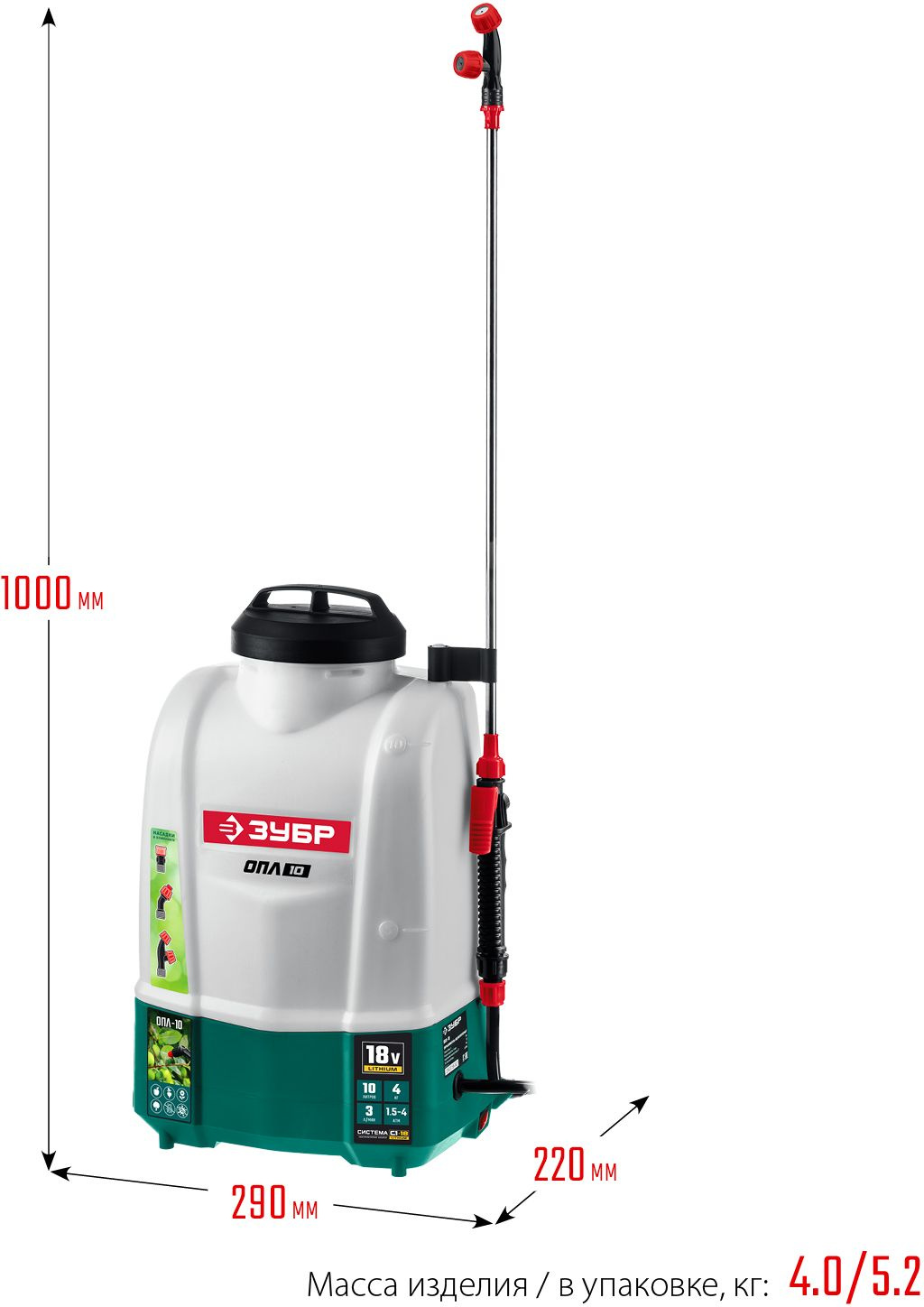 Опрыскиватель Зубр Мастер ОПЛ-10 аккум. наплеч. 10л зеленый/белый (ОПЛ-10)