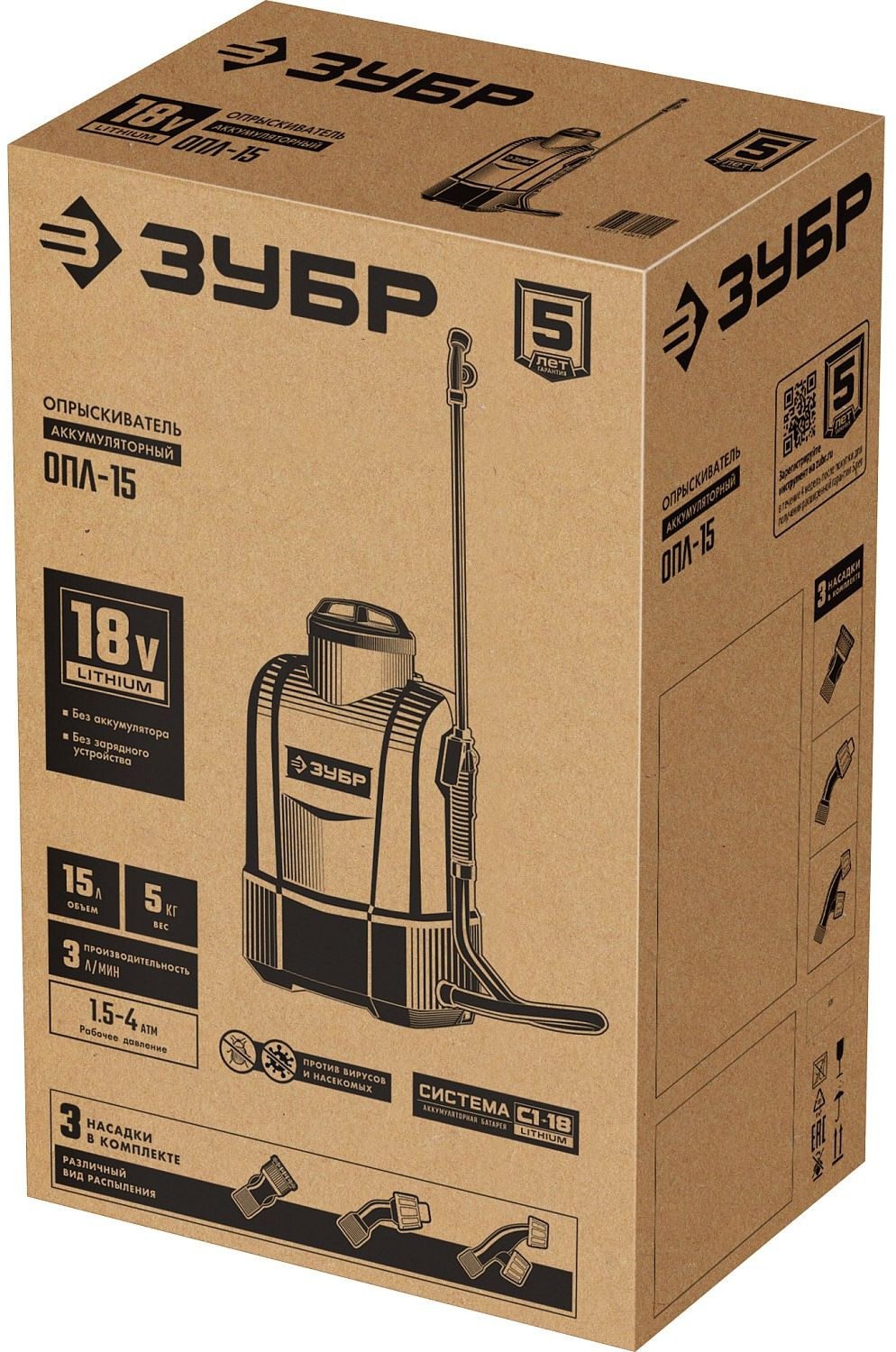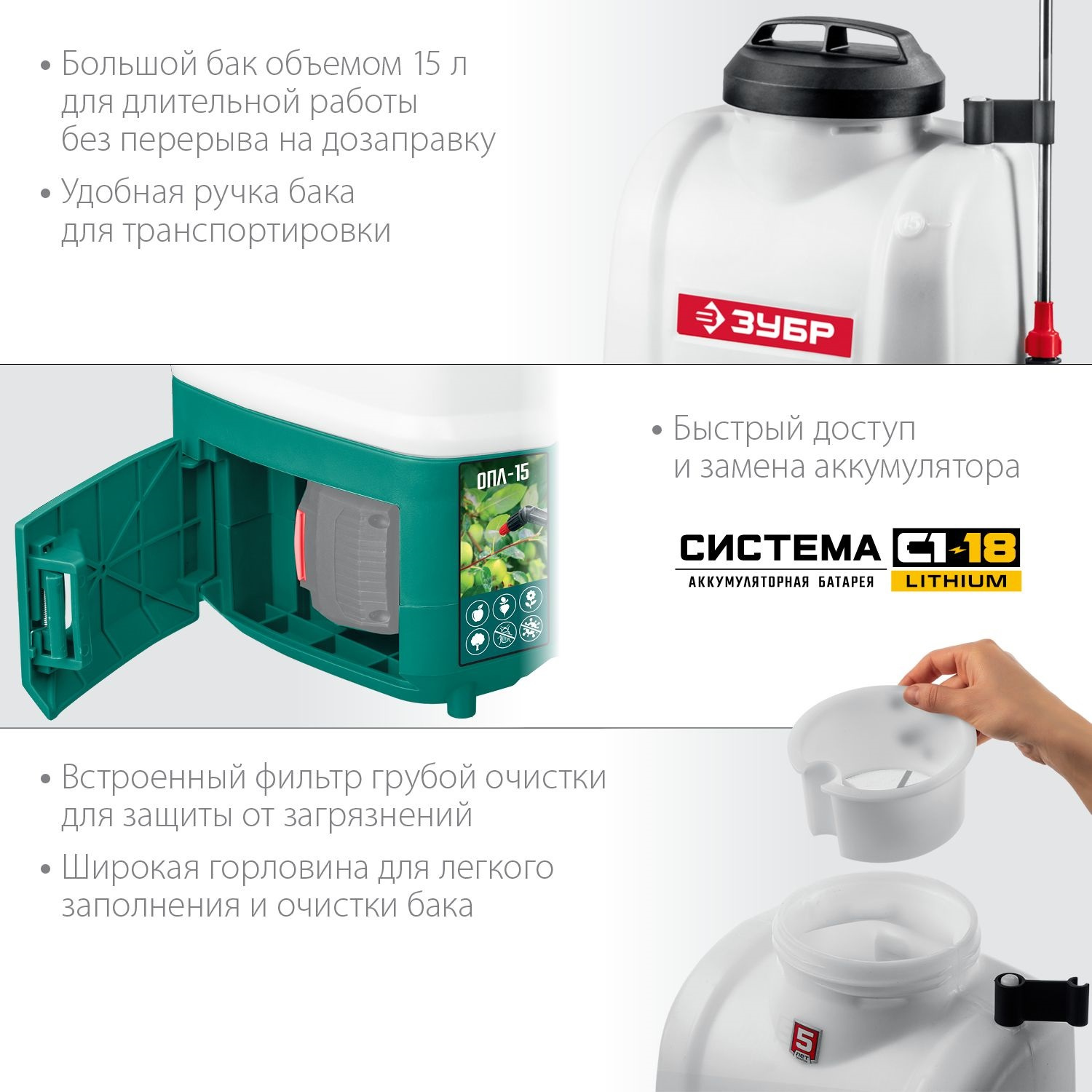 Опрыскиватель Зубр Мастер ОПЛ-15 аккум. наплеч. 15л белый/зеленый (ОПЛ-15)