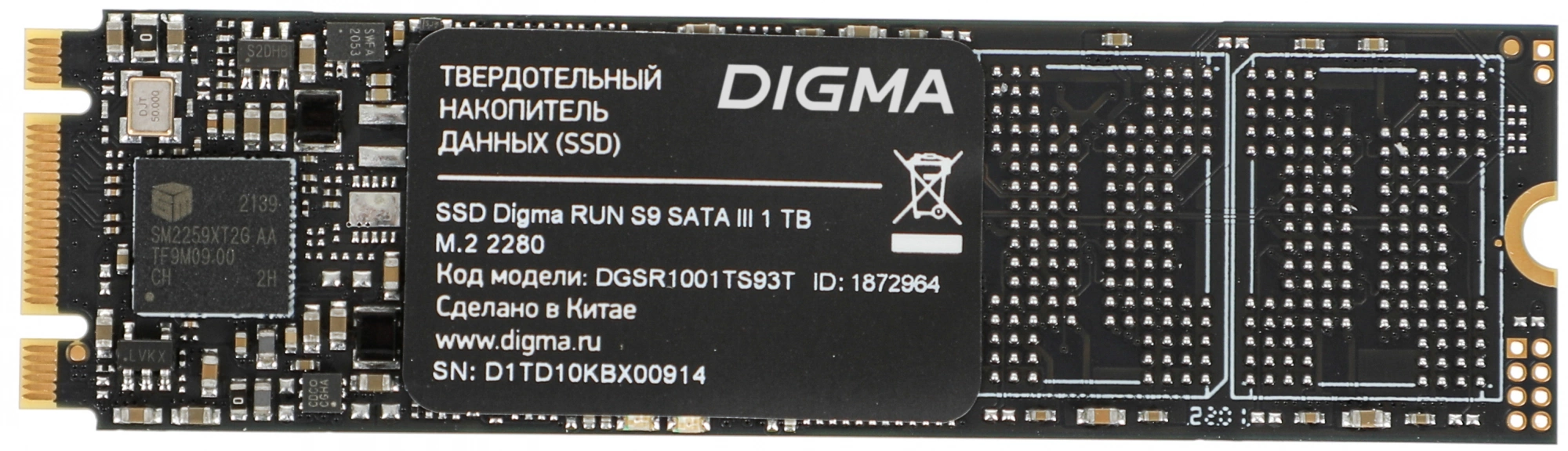Накопитель SSD Digma SATA-III 1TB DGSR1001TS93T Run S9 M.2 2280
