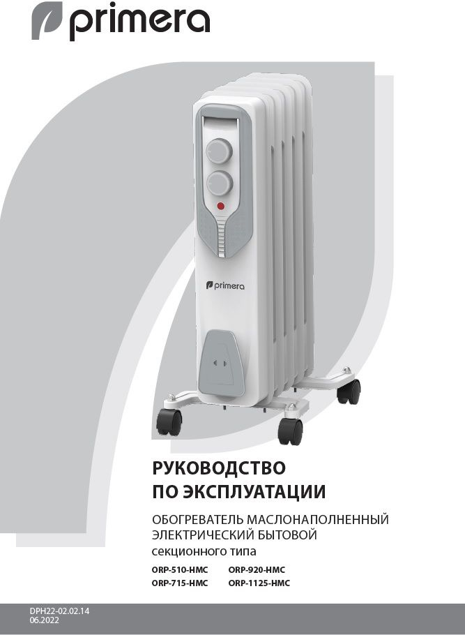Радиатор масляный Primera ORP-715-HMC 1500Вт белый