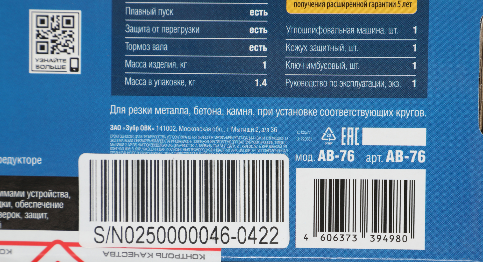 - Ссылка на сайт поставщика/вендораhttps://zubr.ru/mekhanizirovannye-instrumenty/akkumulyatornyy-instrument/akkumulyatornye-ushm/brushless-ugloshlifovalnye-mashiny-professional/ab-76-4g5r/?ID=996418