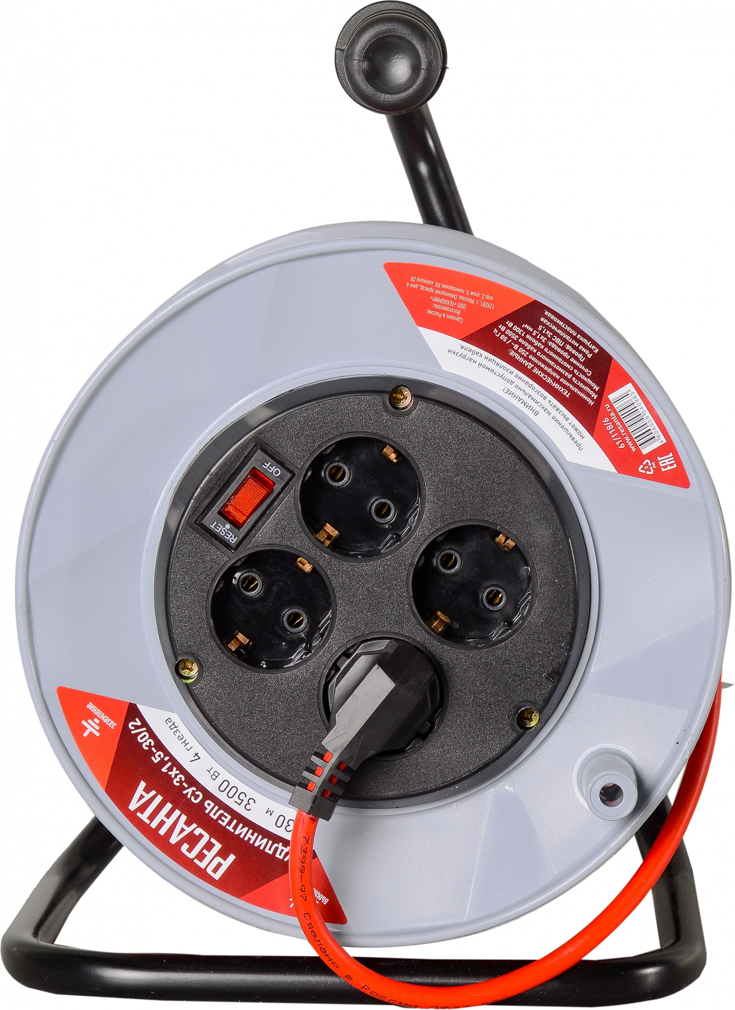 Удлинитель силовой Ресанта СУ-3х1,5-30/2 (61/118/6) 2x1.0кв.мм 4розет. 40м ПВС катушка серый