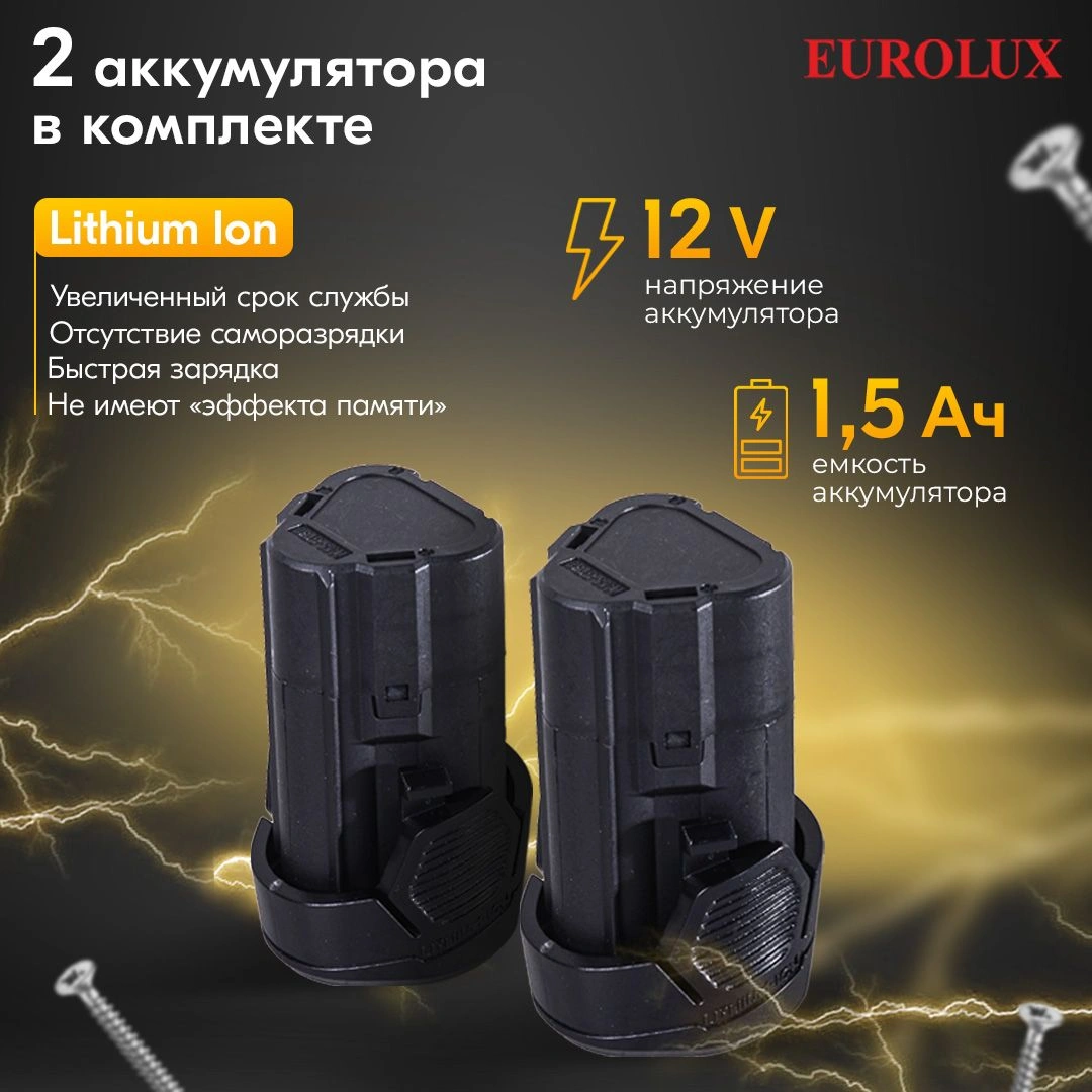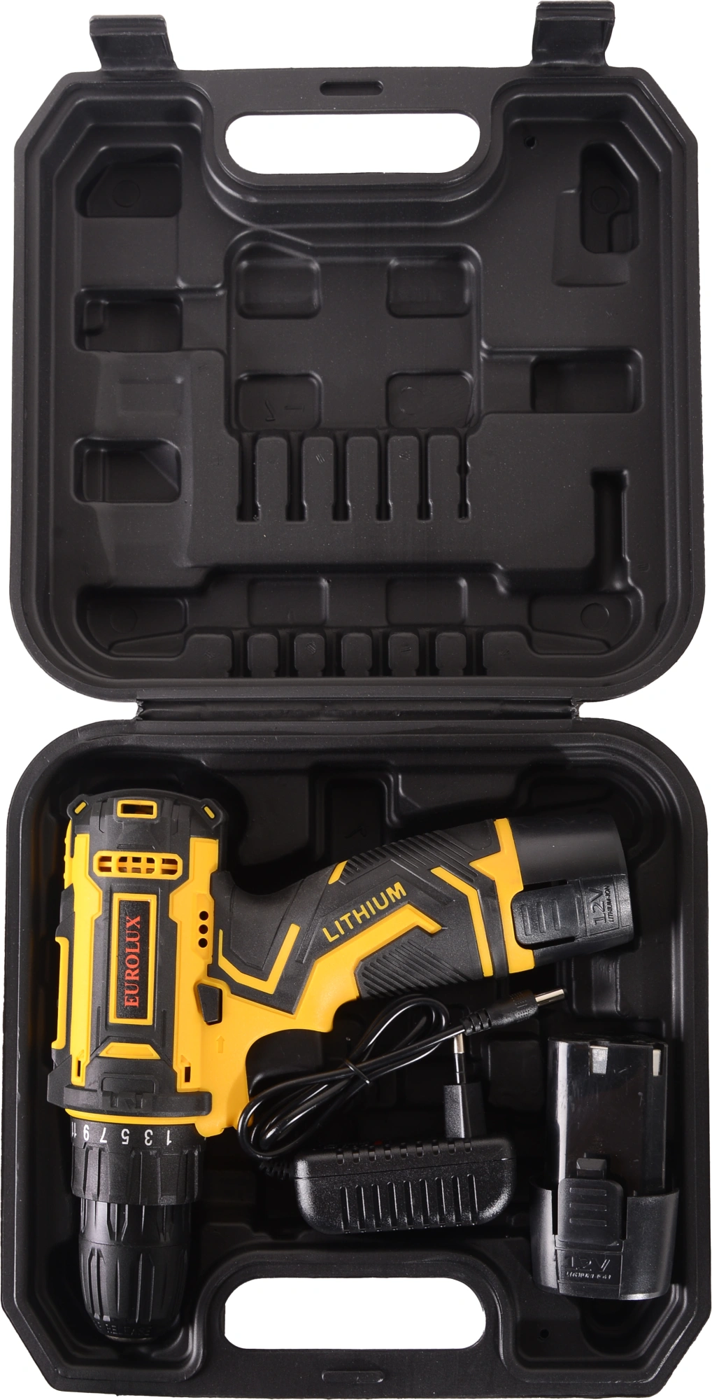 Дрель-шуруповерт Eurolux ДА-12/2Li аккум. патрон:быстрозажимной (кейс в комплекте) (72/14/38)