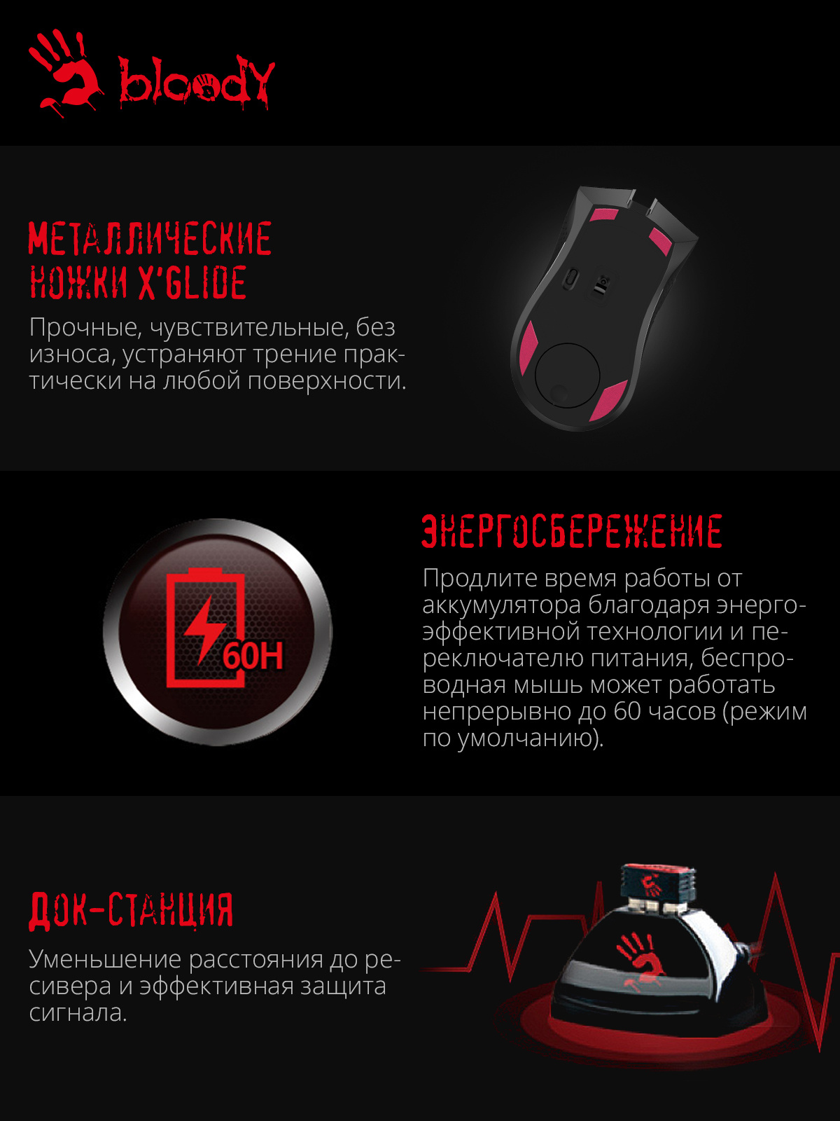 - ОсобенностиИгровой сенсор, 1 мсек скорость срабатывания, металлические ножки. при установке ПО Bloody7, уровни core 3,4 активированы бесплатно