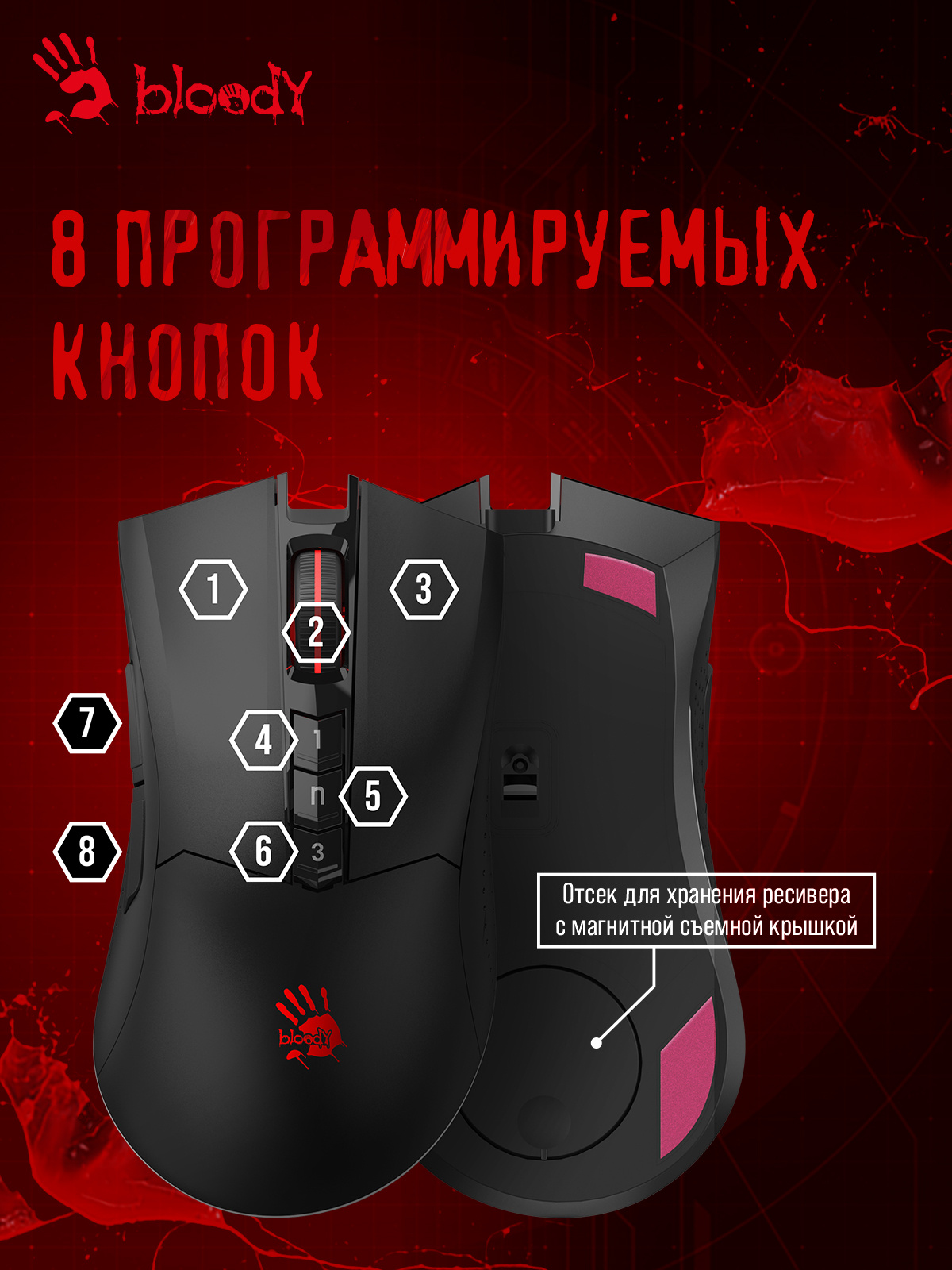 Мышь A4Tech Bloody R90 Plus черный оптическая (5000dpi) беспроводная USB (8but)
