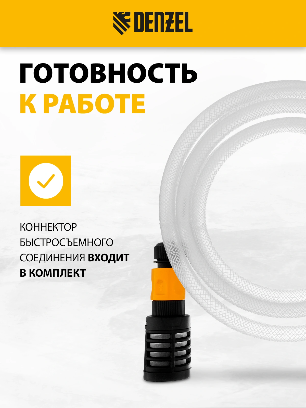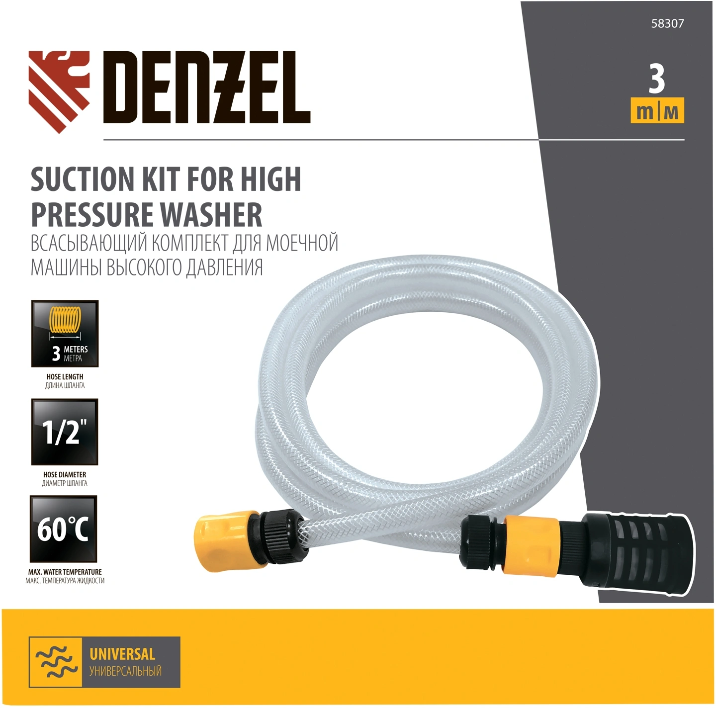 Всасывающий комплект Denzel арт. 58307 устанавливается на моечные машины высокого давления марки Denzel R-серии. С его помощью можно производить мойку без подключения к водопроводу, набирая воду из различных резервуаров.