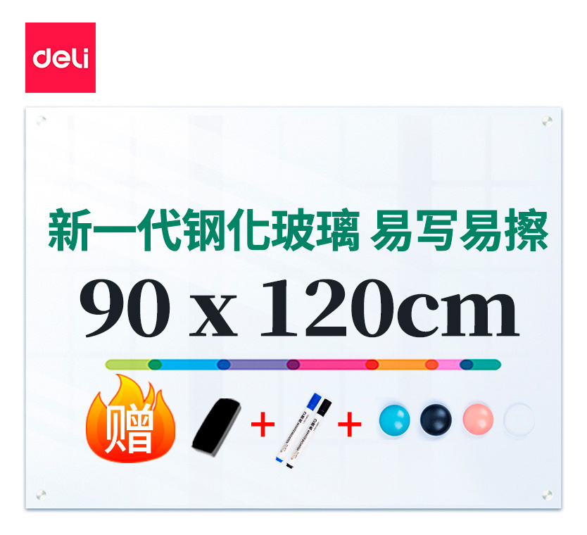 Доска стеклянная Deli 50045 белый 90x120см стекло 4 магнита/2 маркера/стиратель