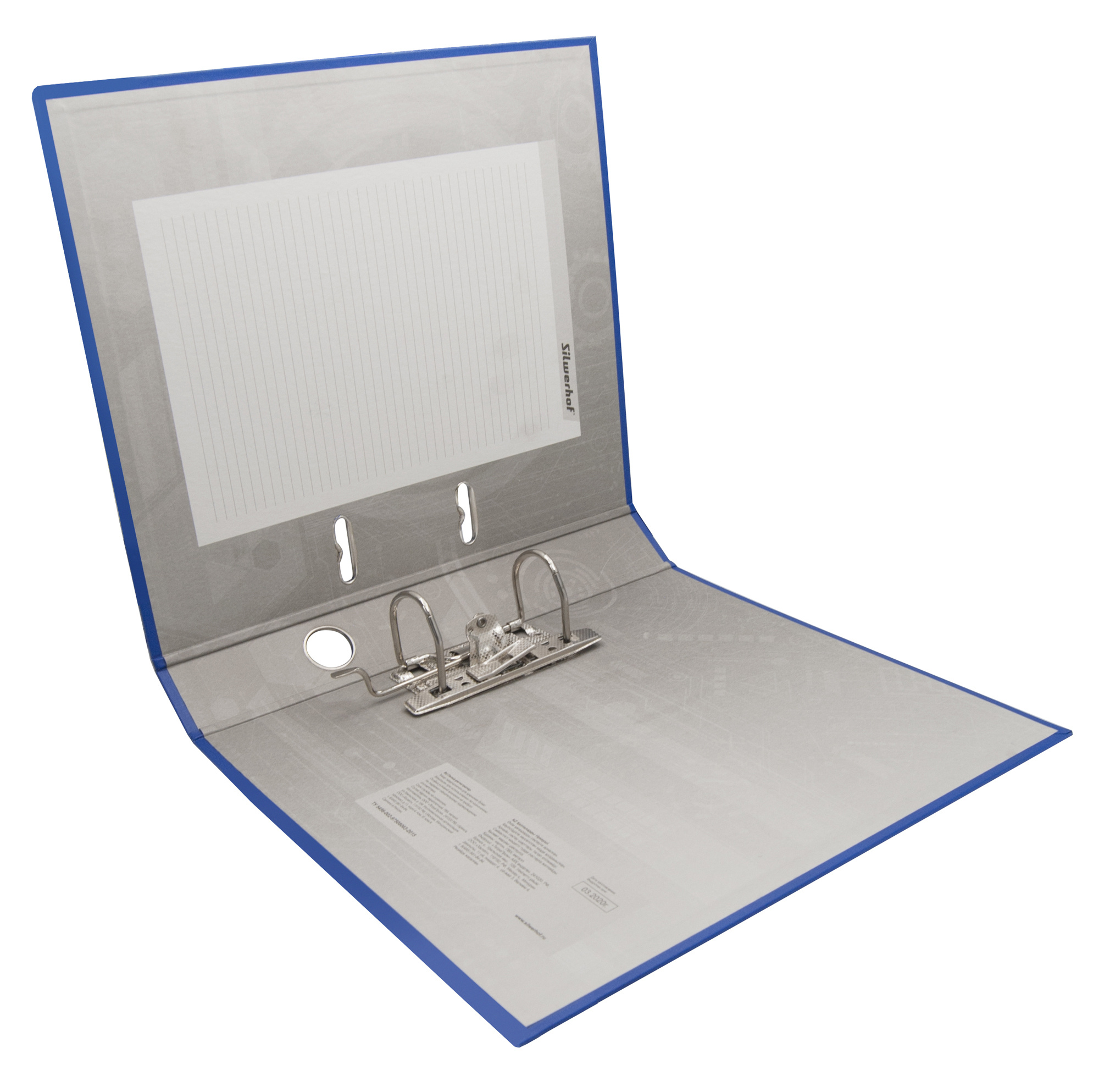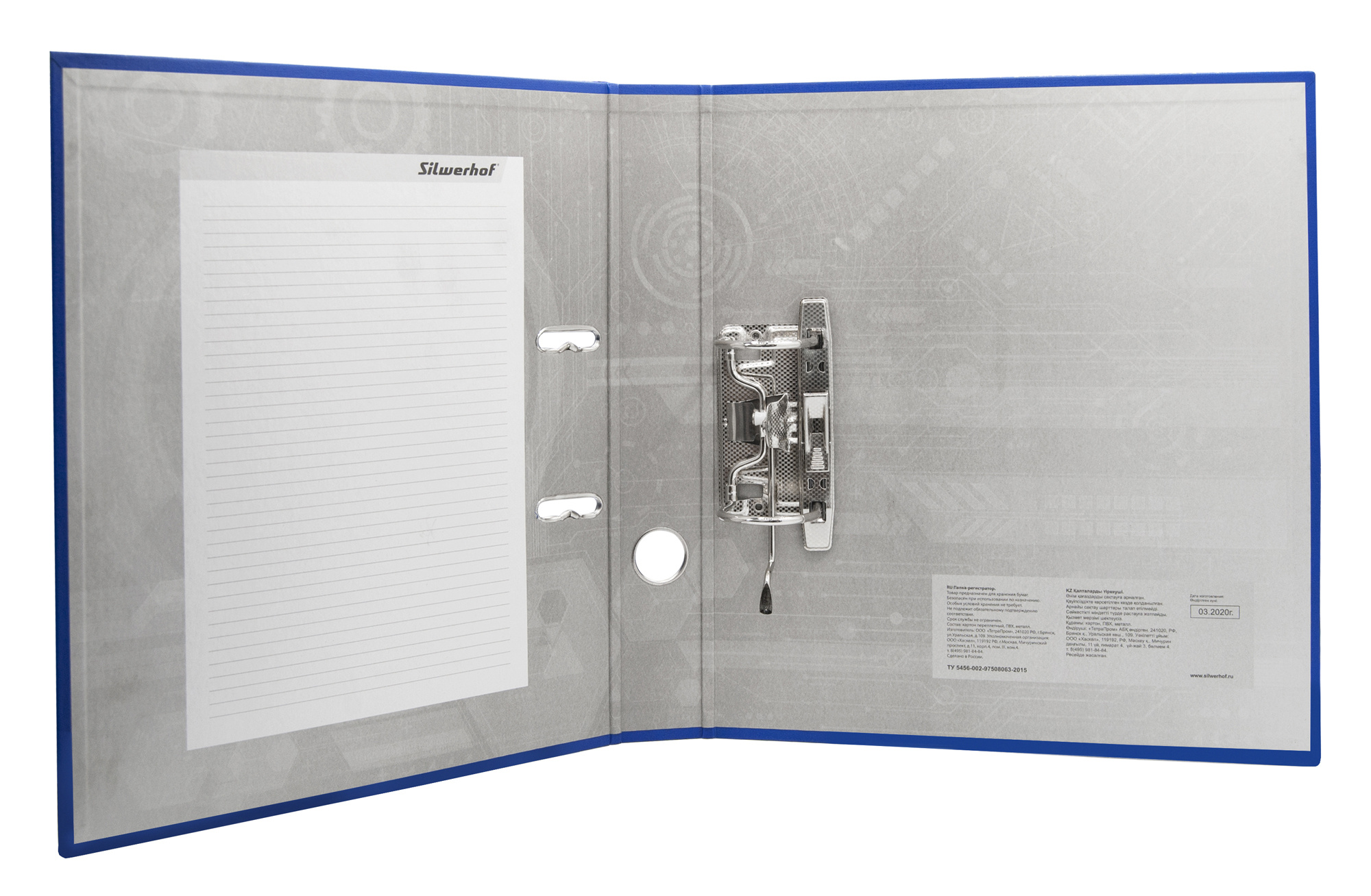 Папка-регистратор Silwerhof A4 75мм ПВХ/бумага синий без. окант. сборная смен.карм. на кор.