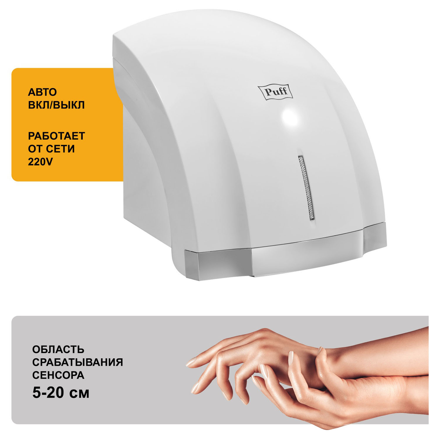 Сушилка для рук Puff 8819 1800Вт белый