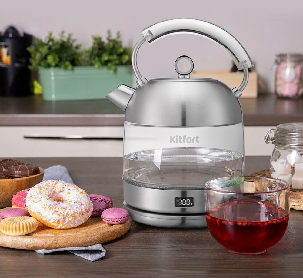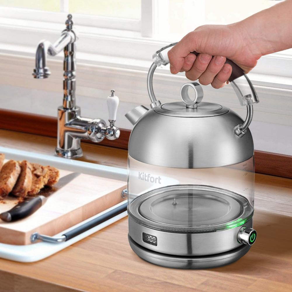 Чайник электрический Kitfort КТ-6172 1.7л. 2200Вт нержавеющая сталь корпус: стекло/металл
