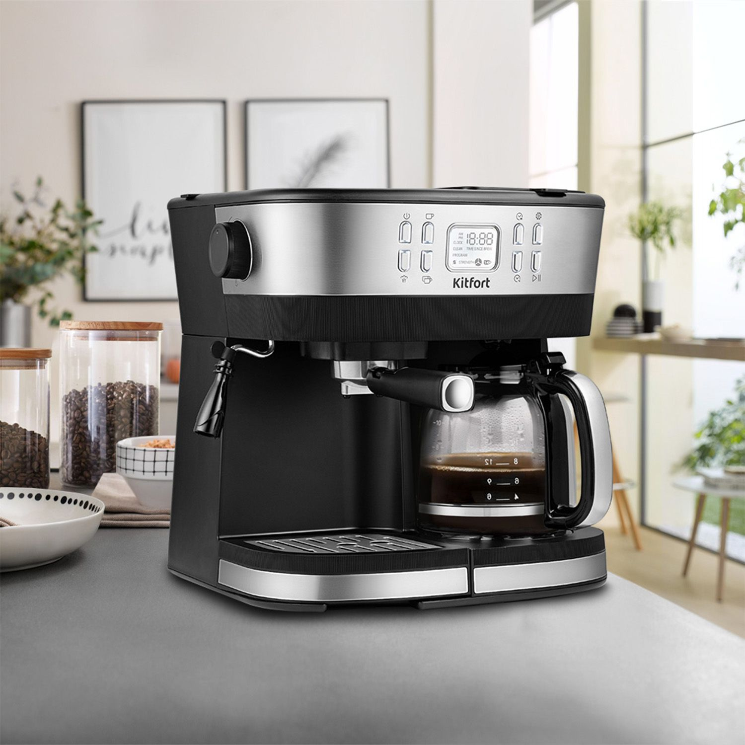 Кофеварка рожковая Kitfort КТ-771 2015Вт нержавеющая сталь/черный