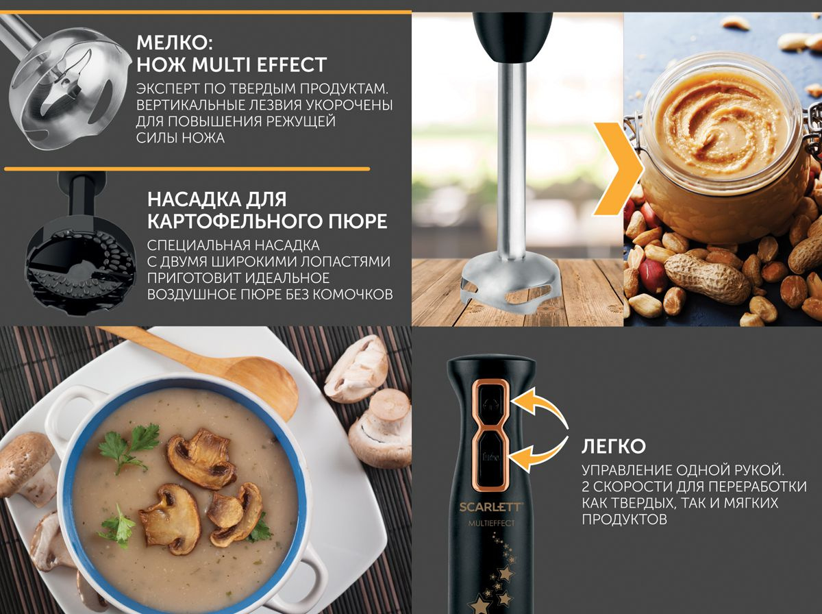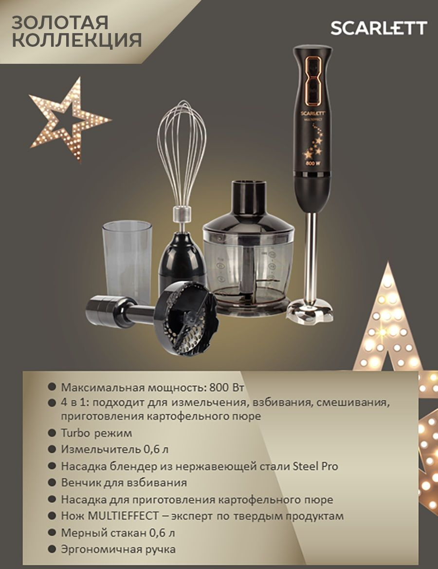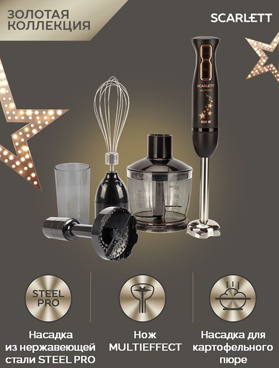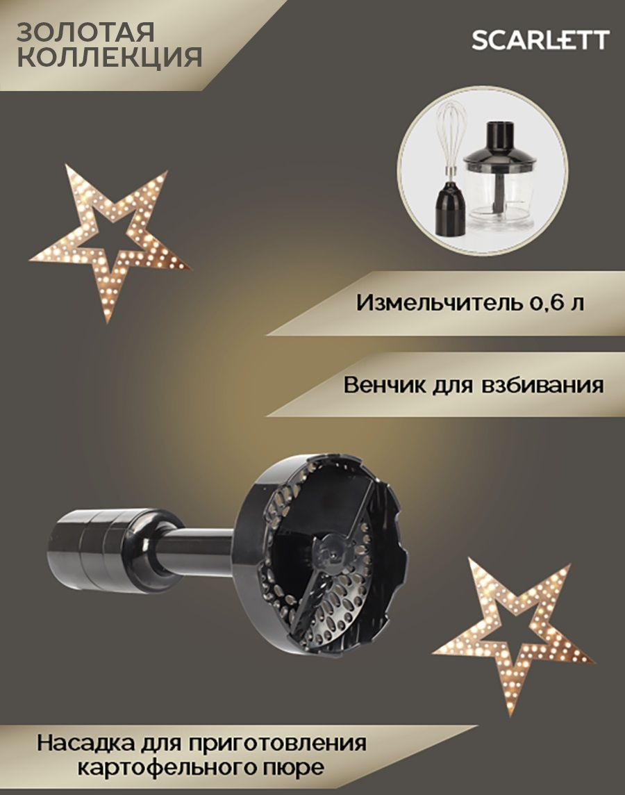 Блендер погружной Scarlett Золотая коллекция SC-HB42M45 800Вт черный/золотистый