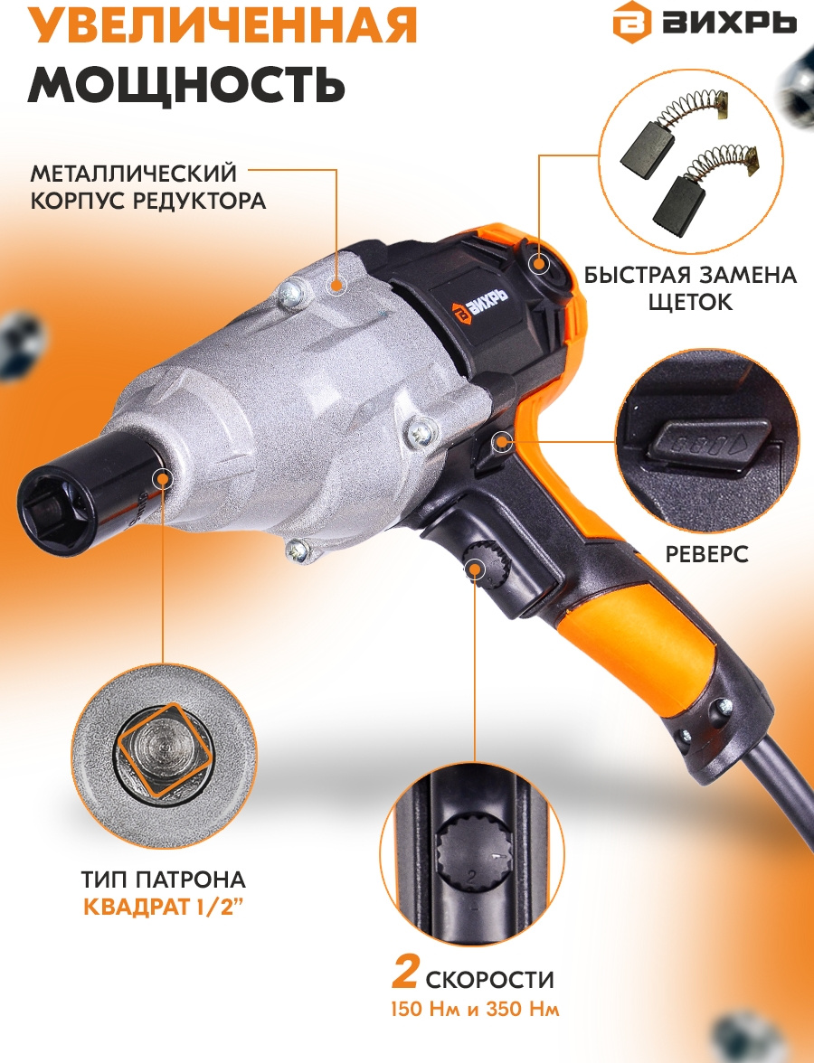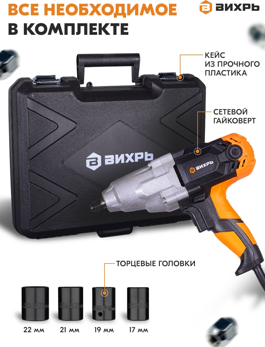 Гайковерт Вихрь ГС-350НМ 1100Вт патрон:квад.1/2" (кейс в комплекте) (72/24/2)