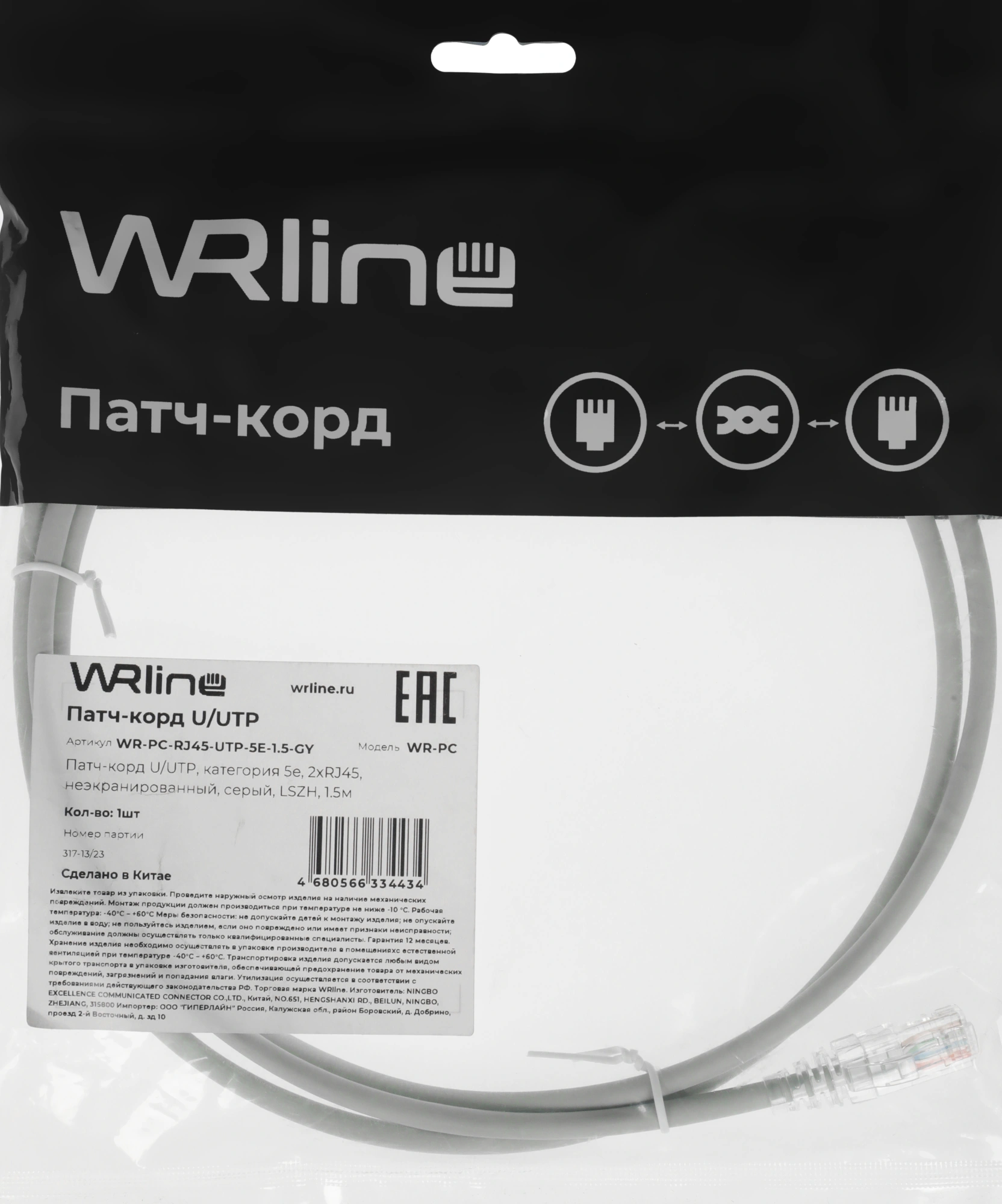 | Код производителя | WR-PC-RJ45-UTP-5E-1.5-GY |