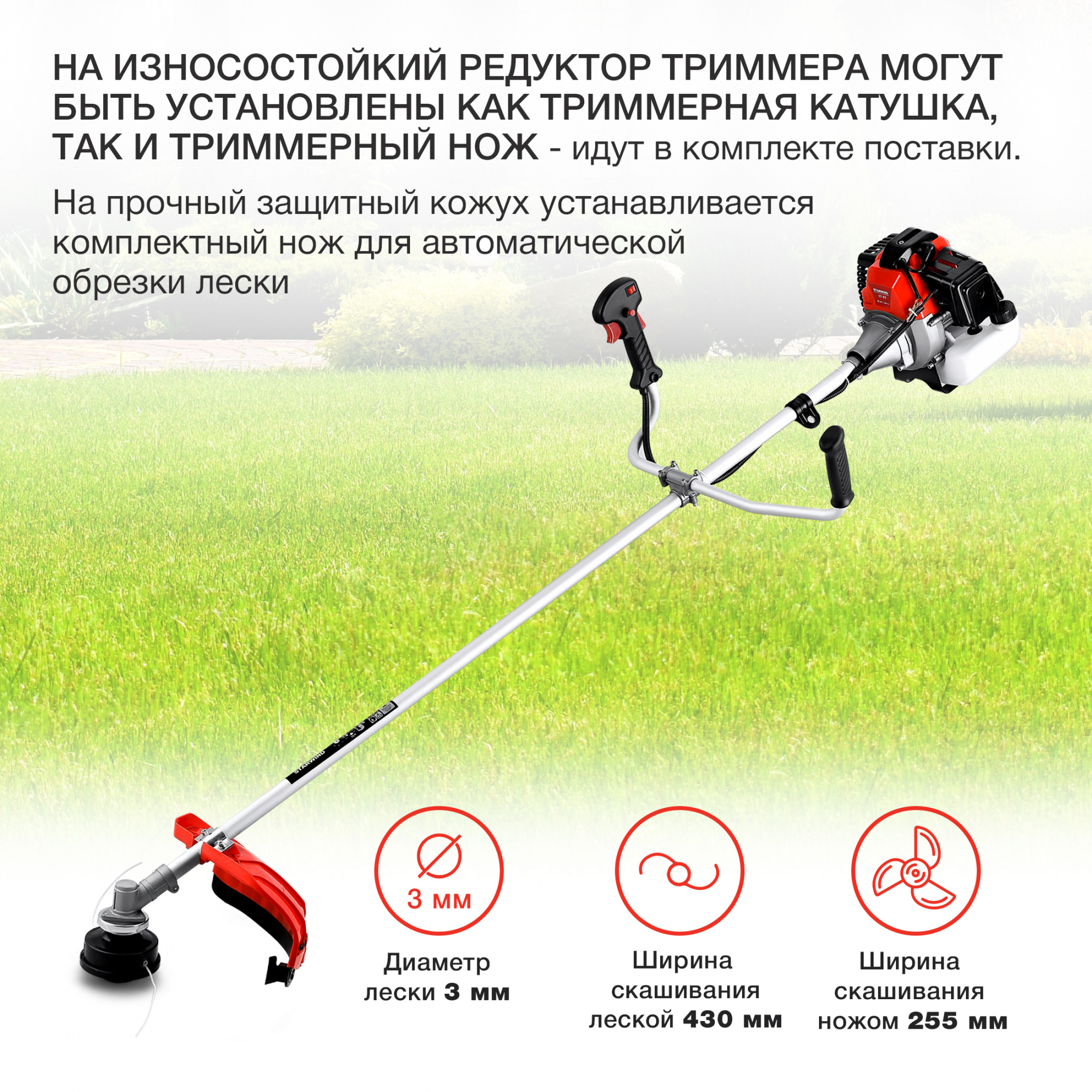 Триммер бензиновый Starwind GT-43 1850Вт 2.5л.с. неразбор.штан. реж.эл.:леска/нож