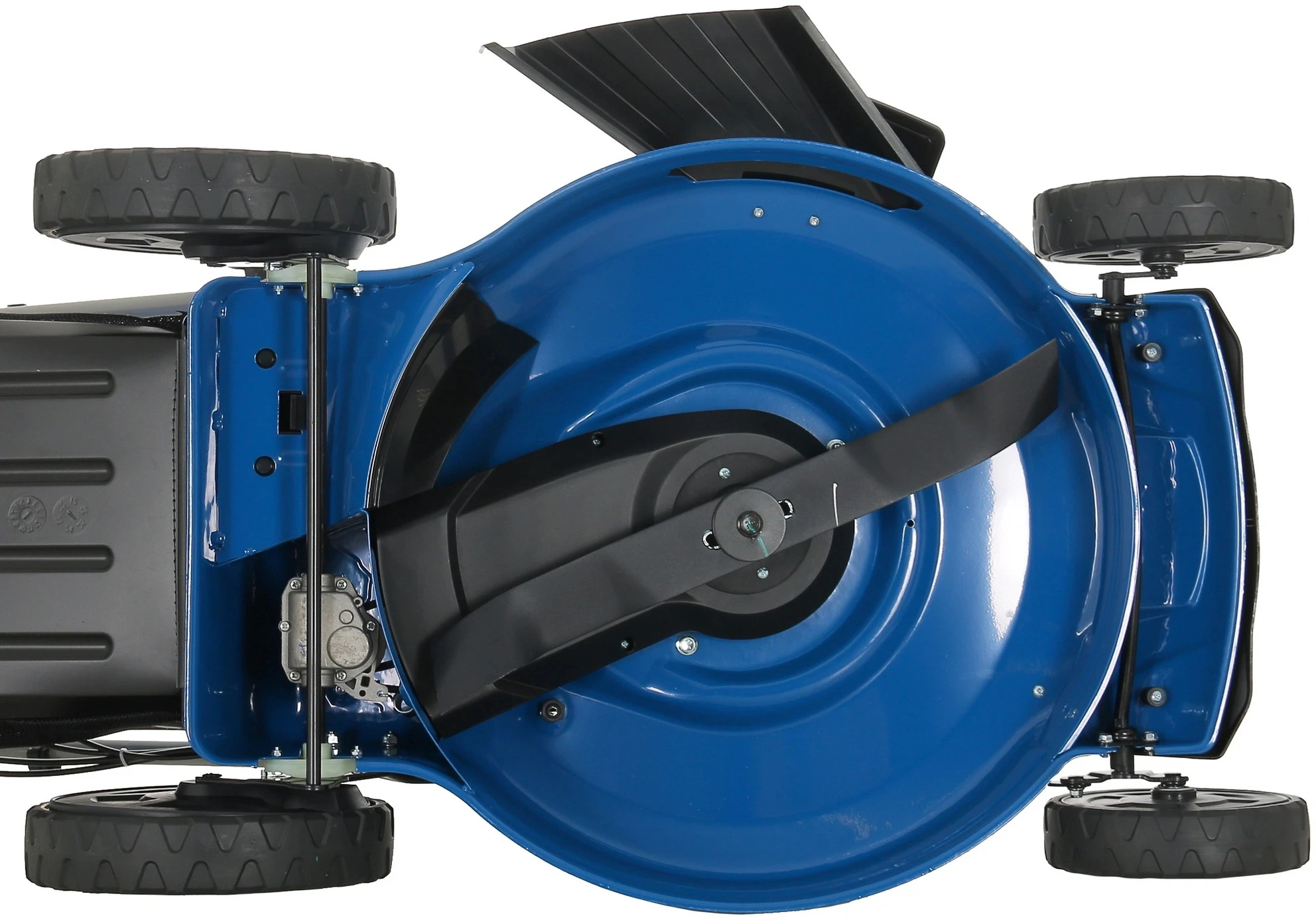 - Особенности устройствамульчирование, регулировка высоты скашивания, ручки для транспортировки, складная ручка