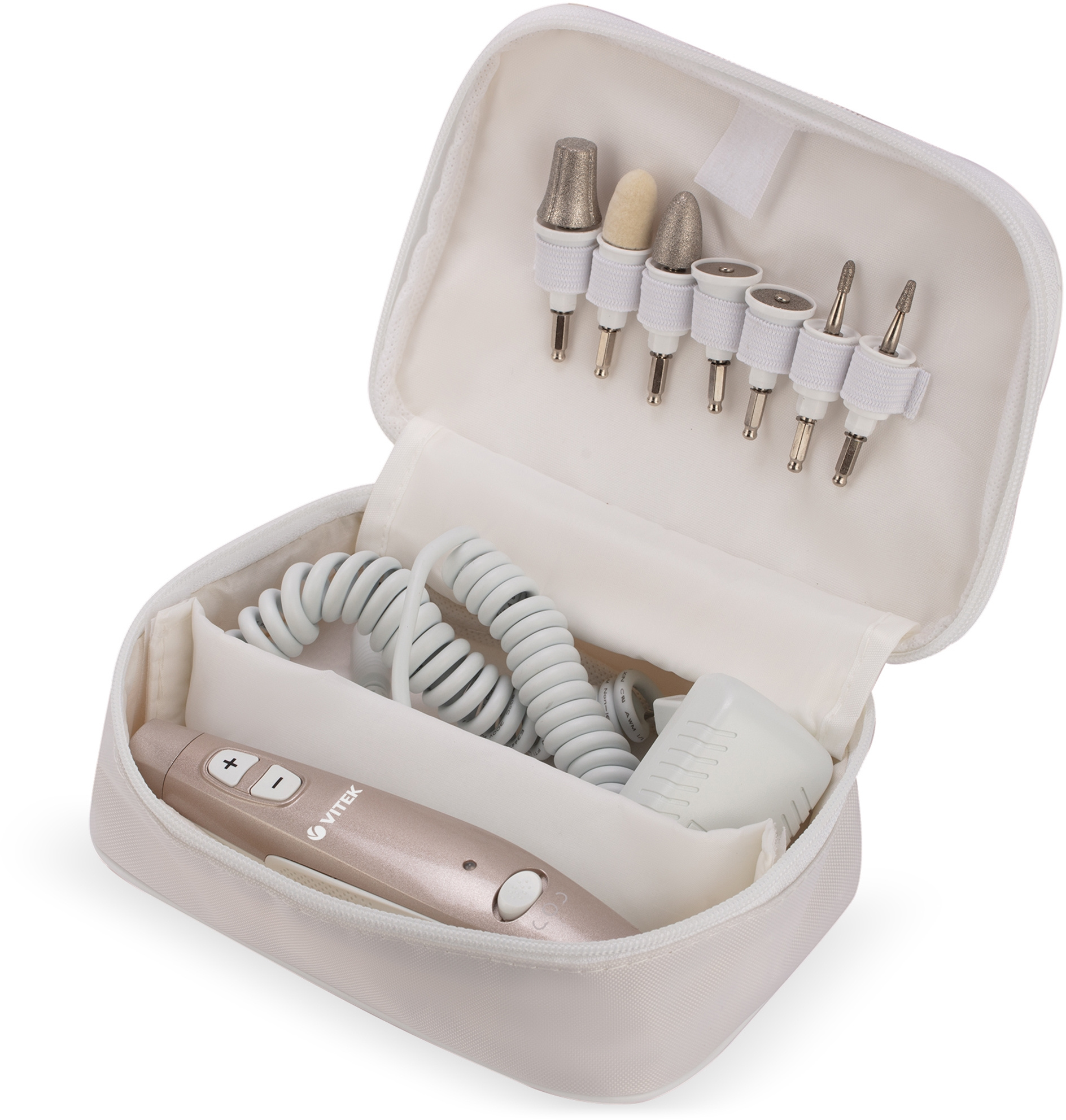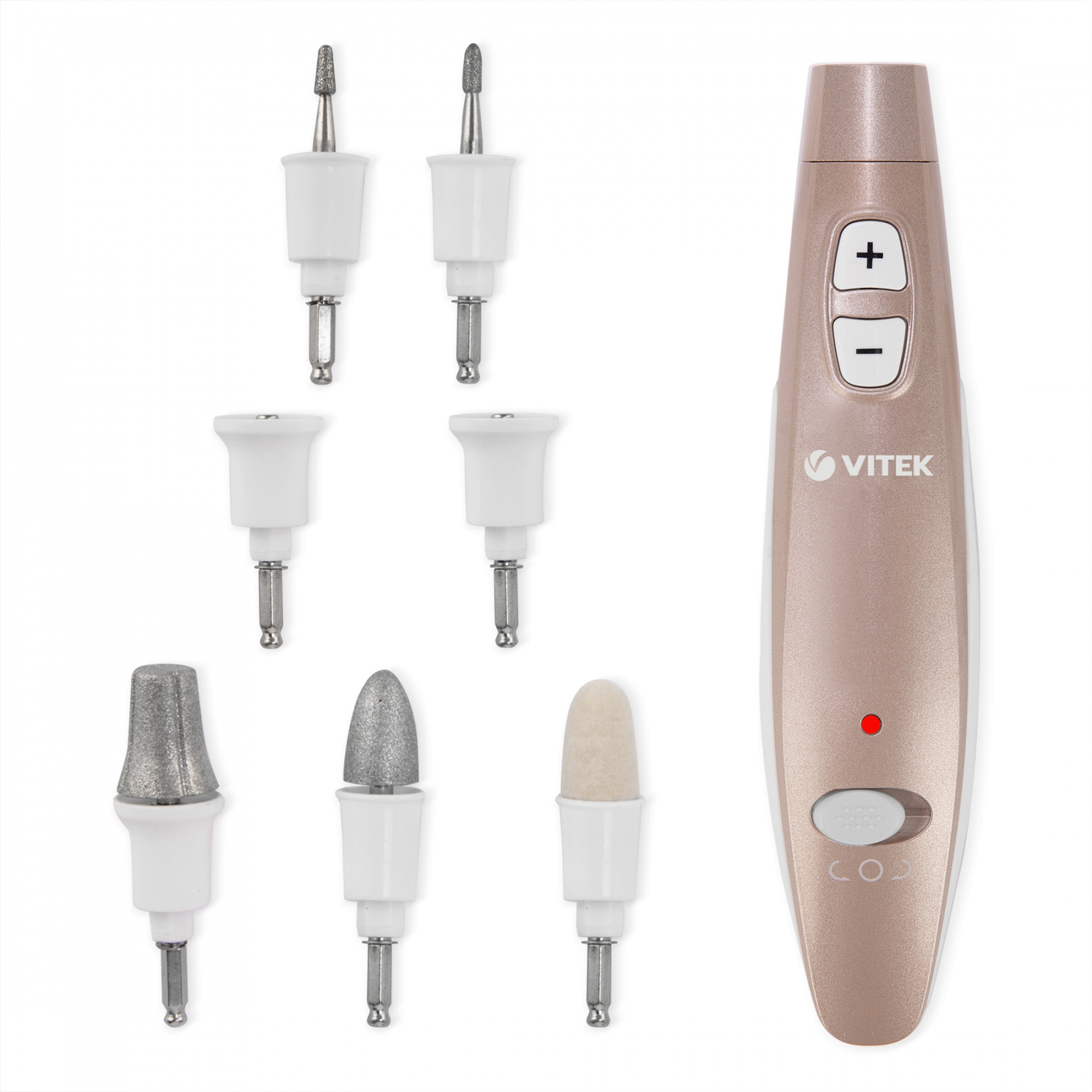 Маникюрно-педикюрный набор Vitek VT-2214 насадок в компл.:7шт (подсветка) золотистый/белый