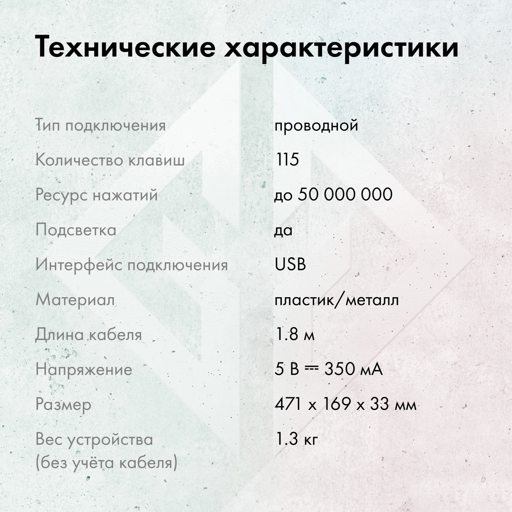 - Размеры клавиатуры471x32x169мм