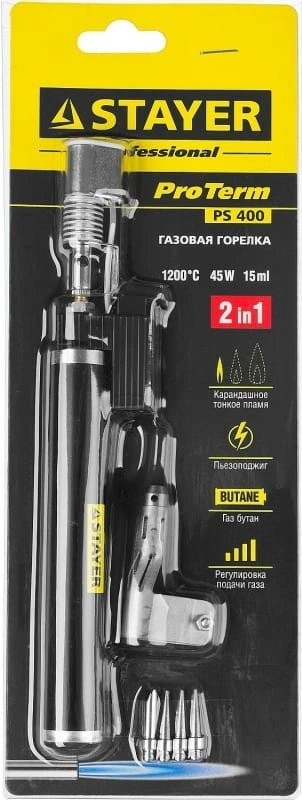 Паяльная горелка Stayer Профессионал PS400 газовый 70Вт макс.t=450 (55505-H6)