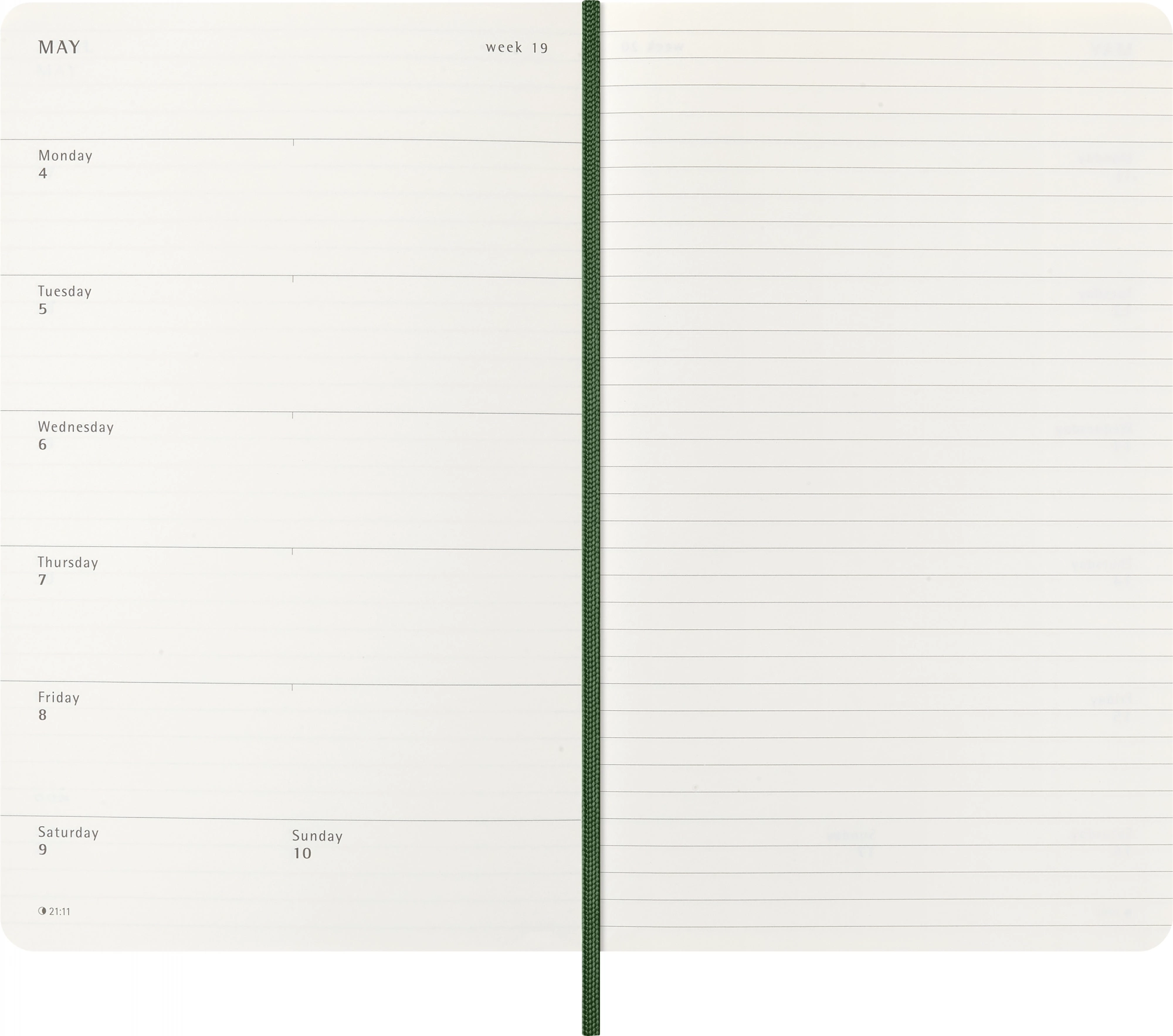 Еженедельник Moleskine CLASSIC SOFT WKNT Large 130х210мм датир.12мес 144стр. линейка мягкая обложка зеленый
