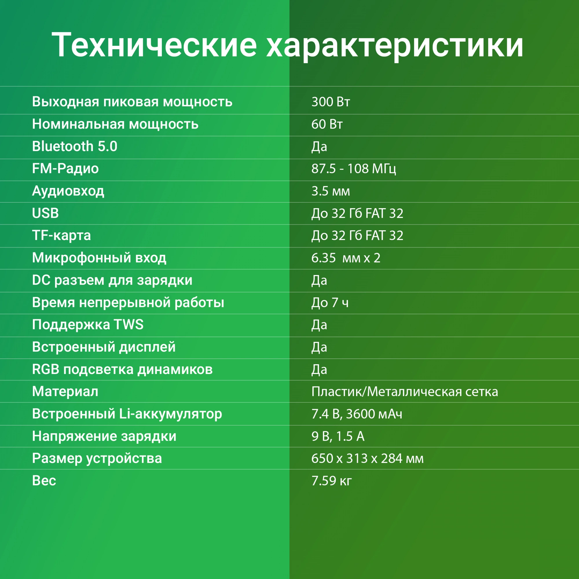 - Пиковая музыкальная выходная мощность (PMPO)300