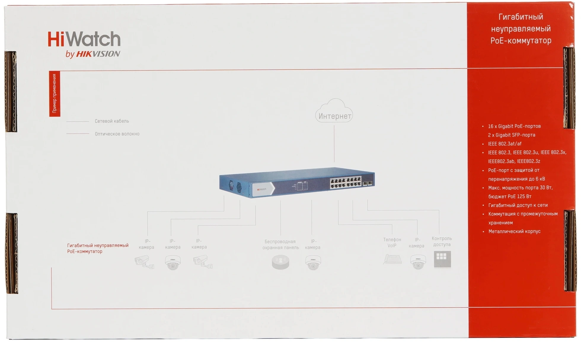 Коммутатор HiWatch DS-S1816GP 16x100Mb 1G неуправляемый