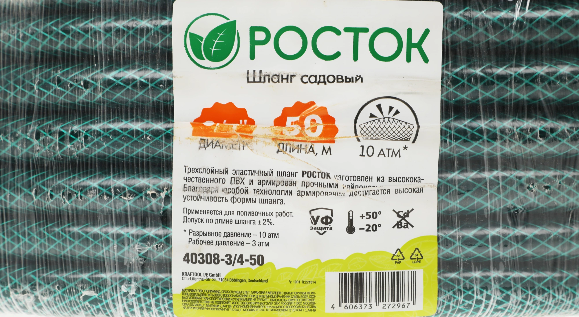 Шланг Росток 40308-3/4-50 3/4" 50м поливочный армированный зеленый
