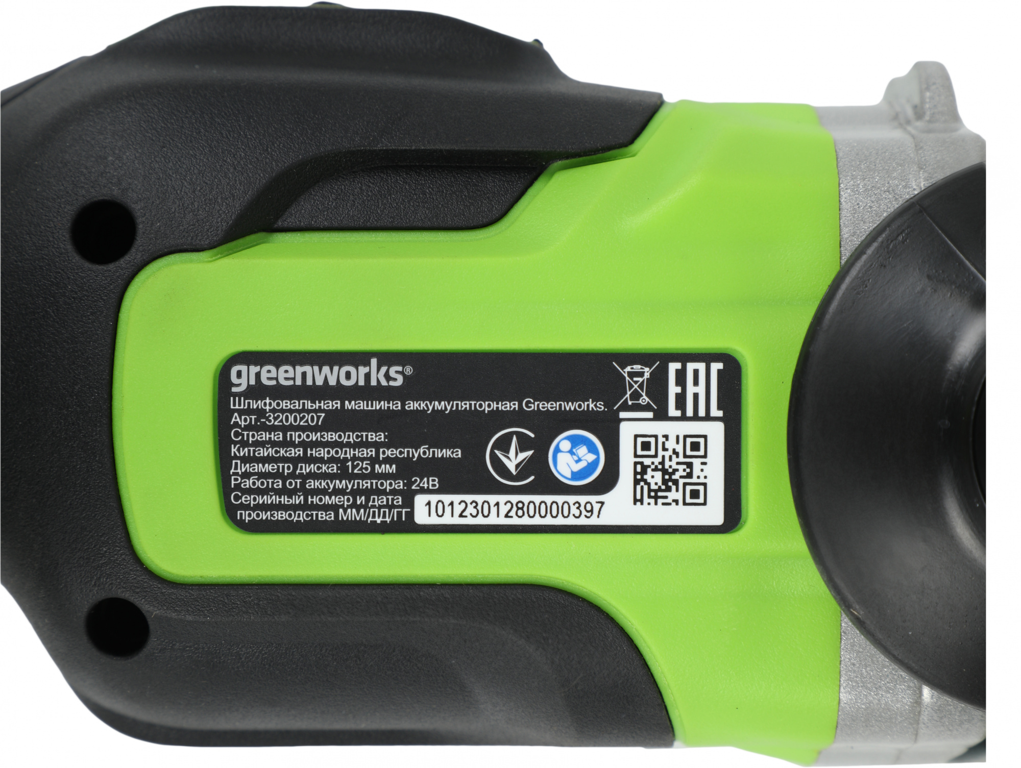 Углошлифовальная машина Greenworks GD24AGK4 10500об/мин рез.шпин.:M14 d=125мм (3200207UB)