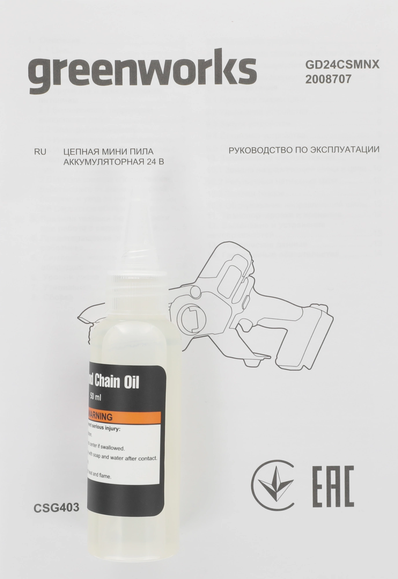 Цепная пила Greenworks GD24CSMNX аккум. 400Вт дл.шины:6" (15.2cm) (2008707)