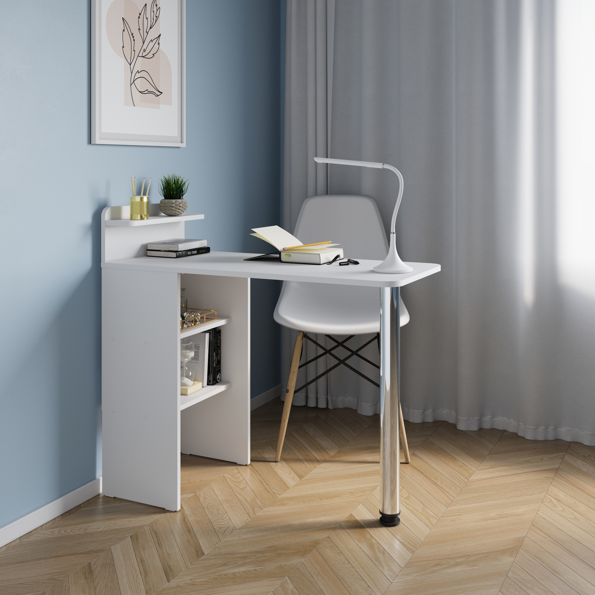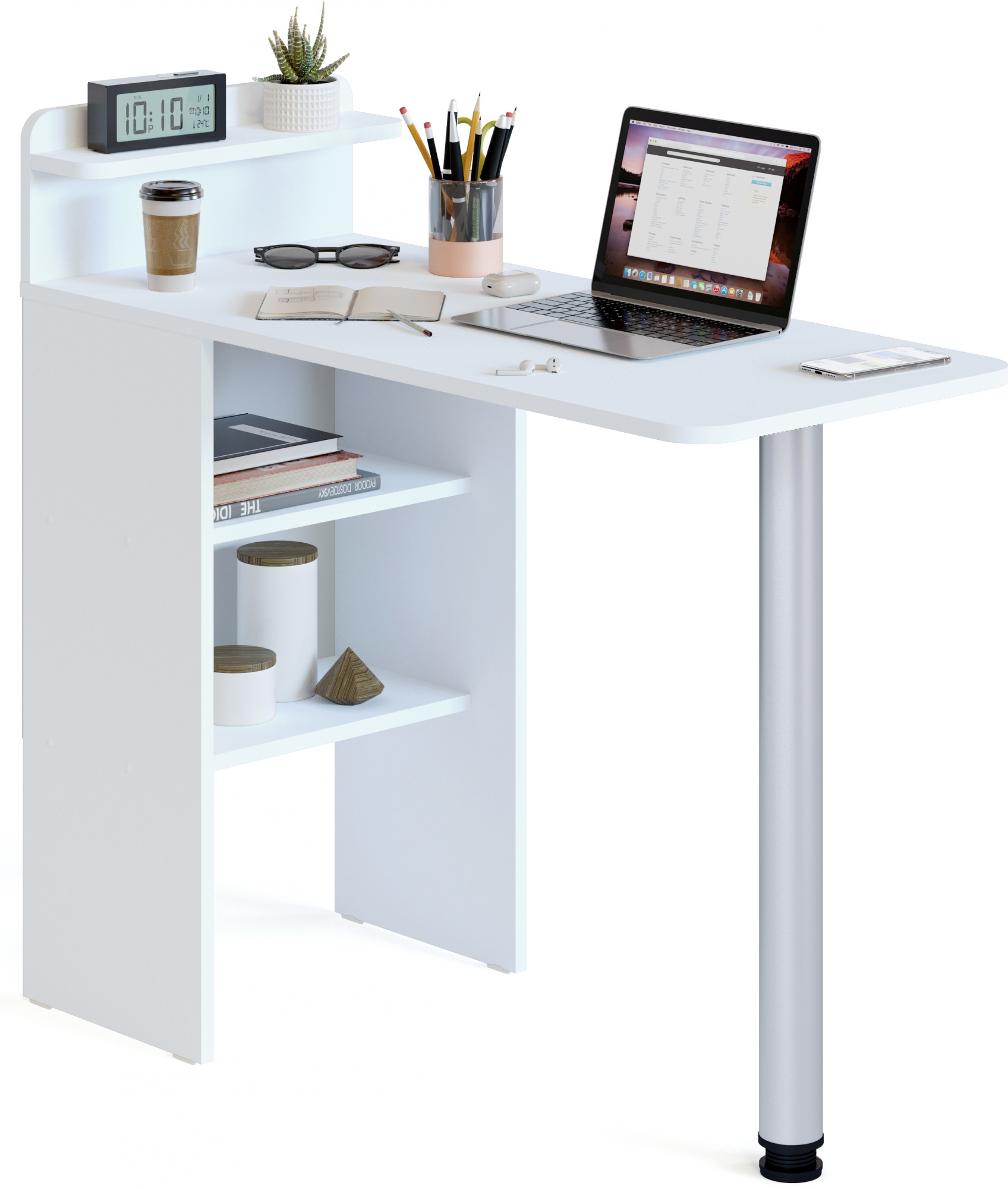 - ОсобенностиБлагодаря раскладному механизму столик легко складывается и занимает минимум места, что делает его идеальным выбором для небольших кухонь и кабинетов. Он не только удобен для работы с ноутбуком, он также идеально подходит для проведения маникюра. Стол оснащен специальным органайзером для косметики.