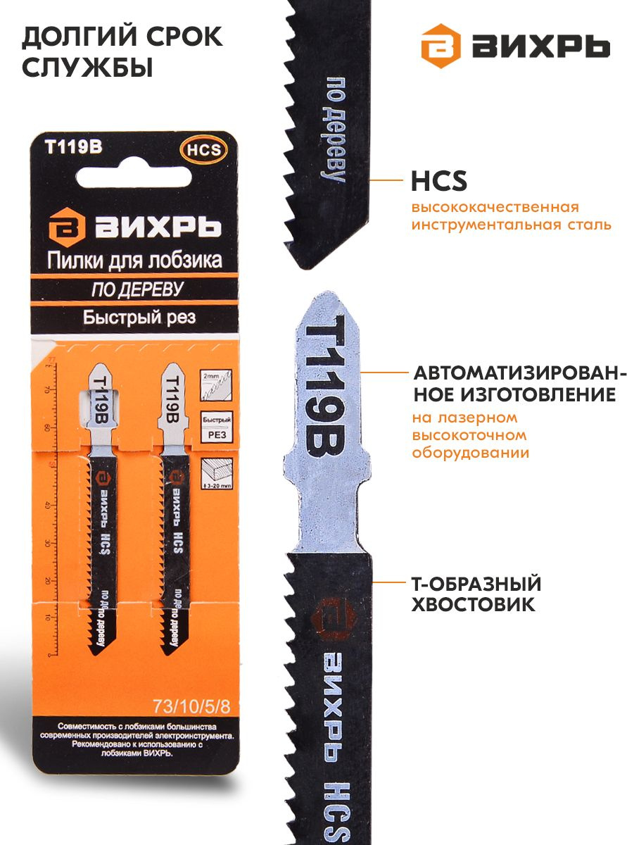 Набор пилок по дереву Вихрь Т119В 2пред. (лобзики)