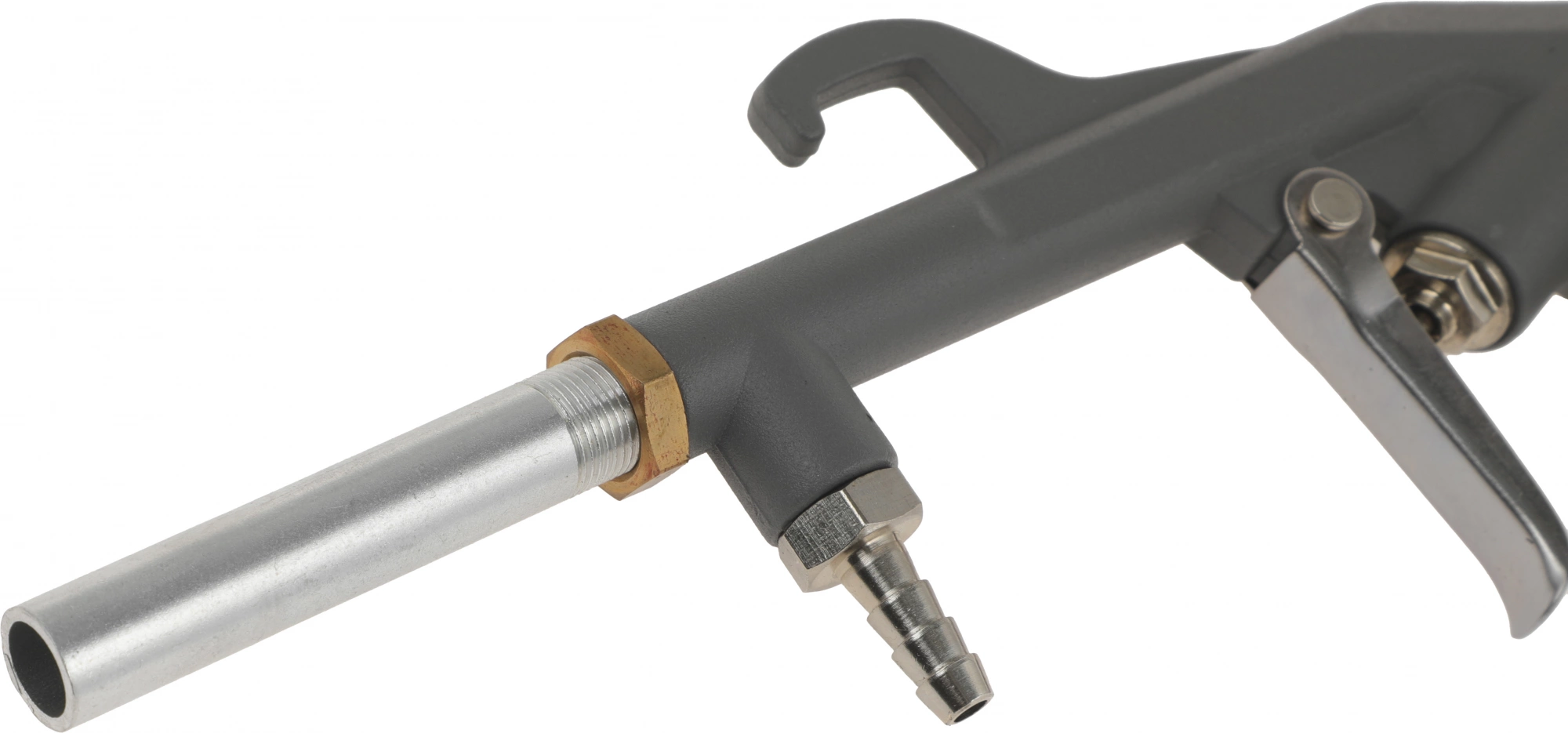 Пневмопистолет пескоструйный с шлангом. Предназначен для очистки поверхностей от грязи и ржавчины, а также снятия старых покрытий струей песка. Оснащен выносным шлангом, что позволяет использовать емкости с любым объемом абразивного вещества на значительном расстоянии от точки подключения.