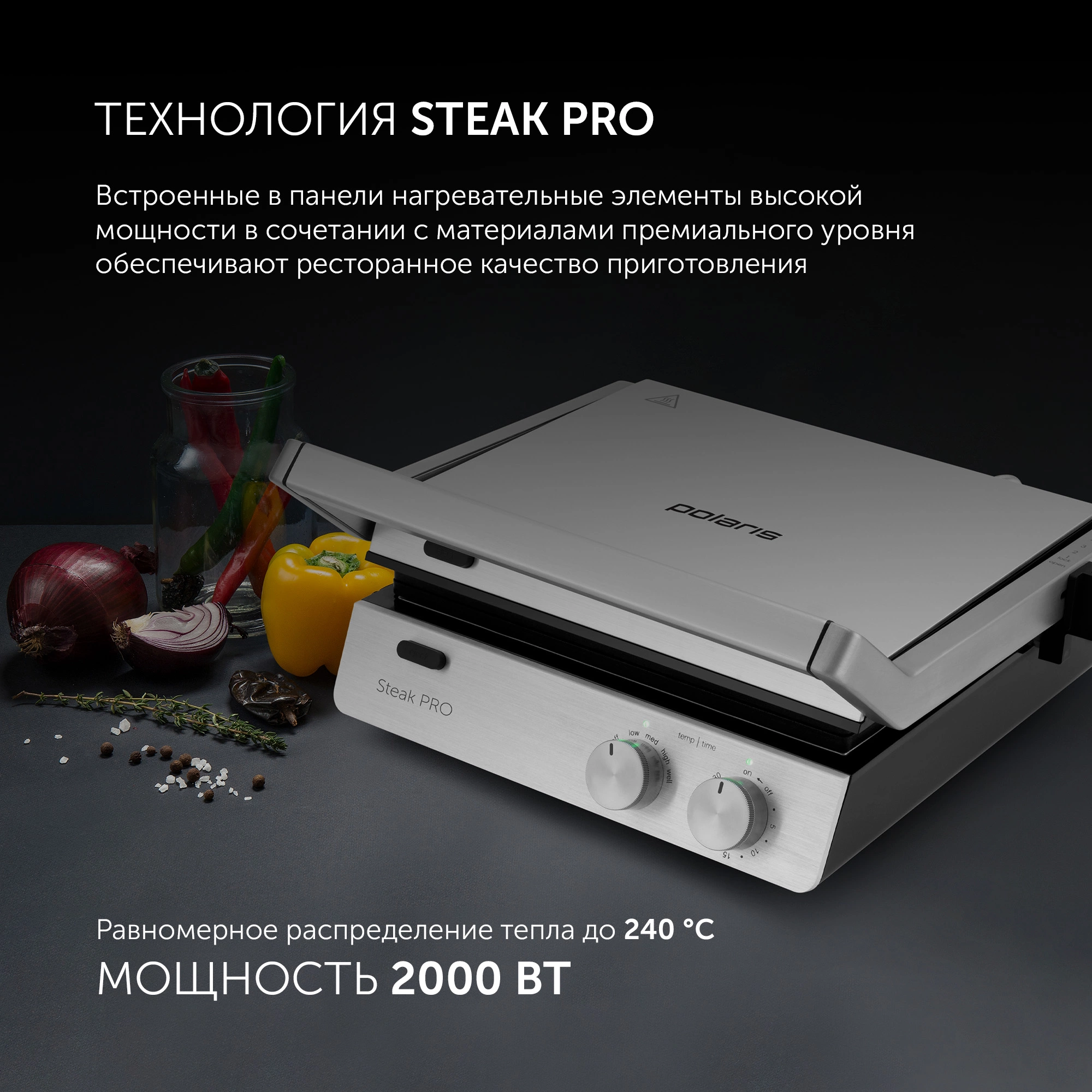 Электрогриль Polaris PGP 2803 2000Вт серебристый