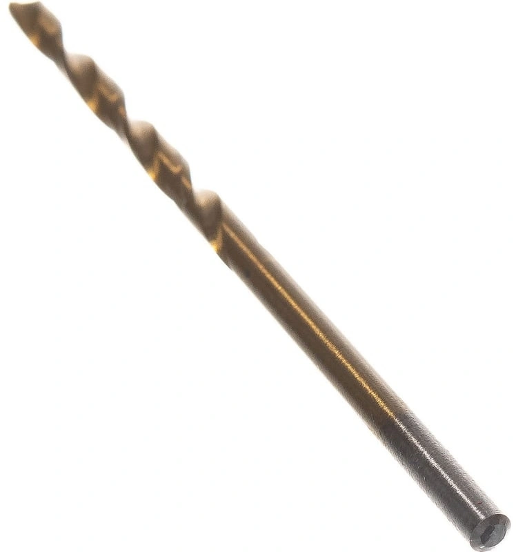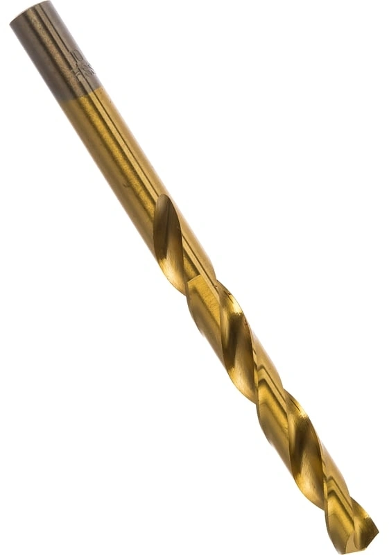 Сверла по металлу 1, 1.5, 2 , 2.5, 3, 3.5, 4, 4.5, 5, 5.5, 6, 6.5, 7, 7.5, 8, 8.5, 9, 9.5, 10 мм. HSS-TiN, покрытие из нитрида титана, шлифованная спираль, цилиндрическое, тип N, 135 град. перекрестная заточка, поверхность золотистая. Не подходит для работы с алюминием.