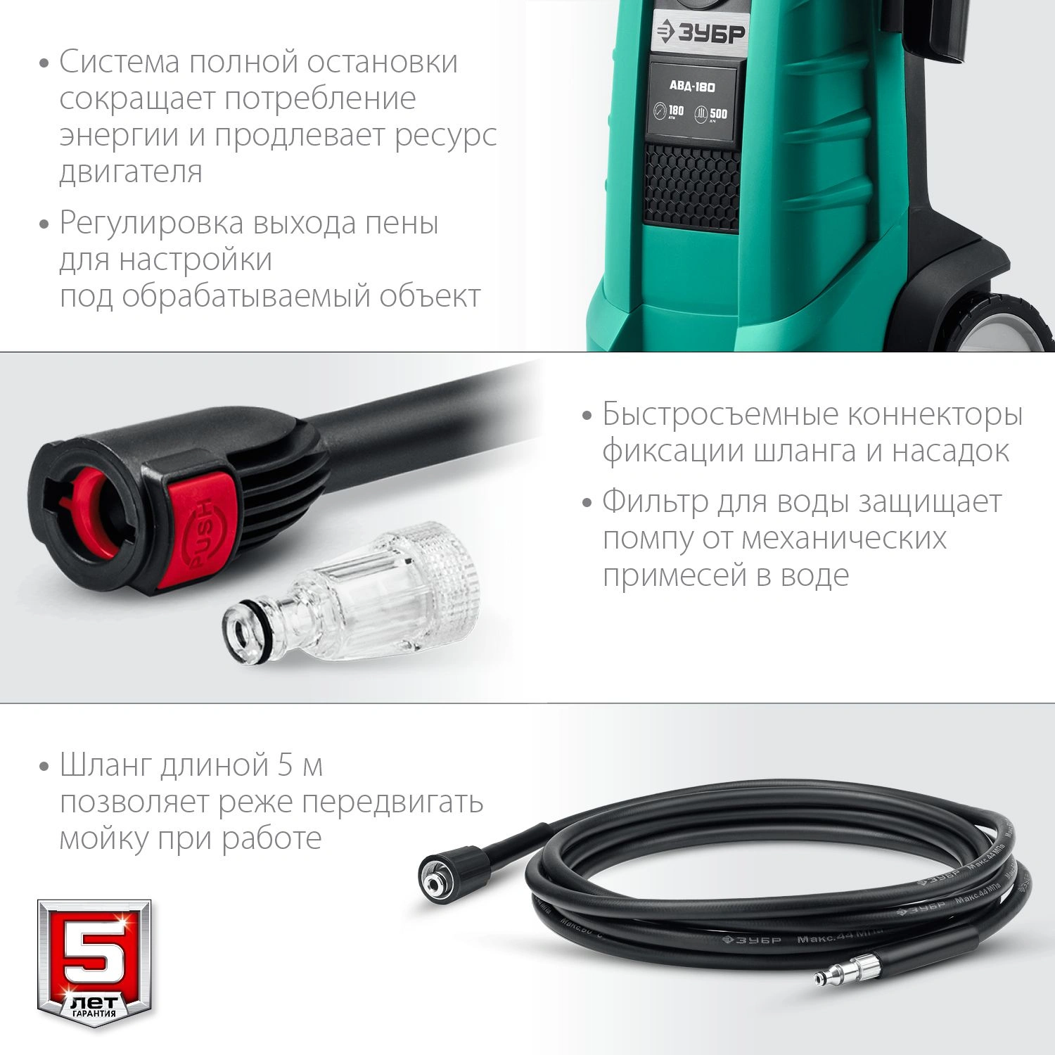 - КомплектацияМойка высокого давления, Рукоятка, Пистолет, Распылитель, Насадка, Насадка 3-в-1, Шланг высокого давления (5 м), Пеногенератор (0,7 л), Фильтр, Игла для прочистки, Руководство по эксплуатации